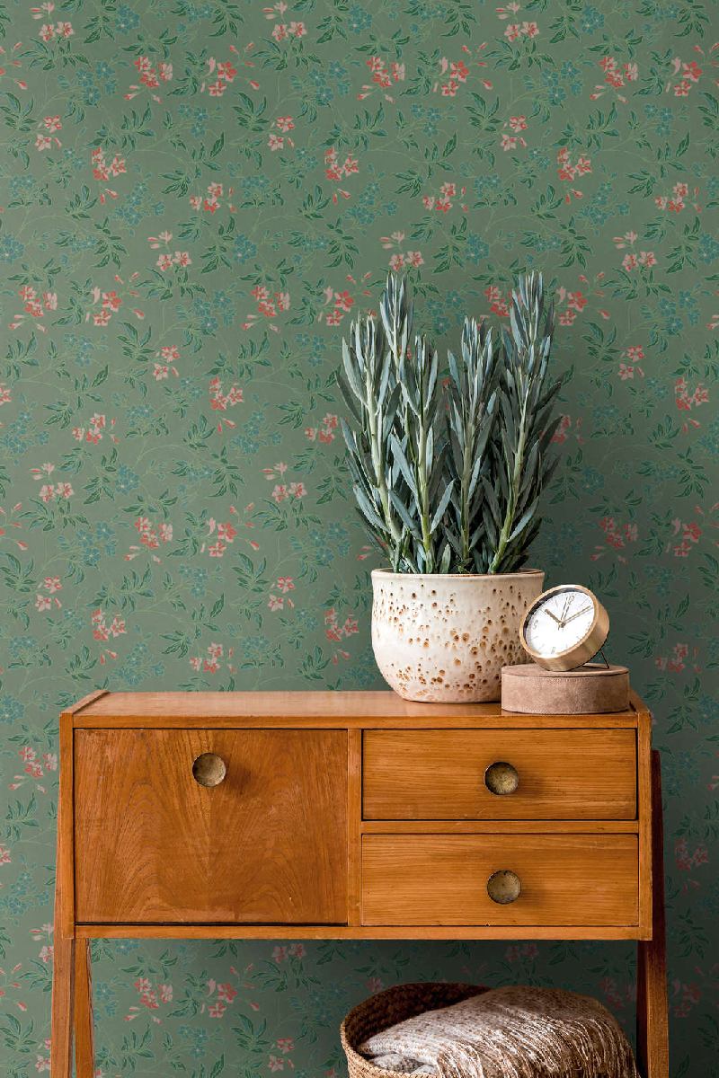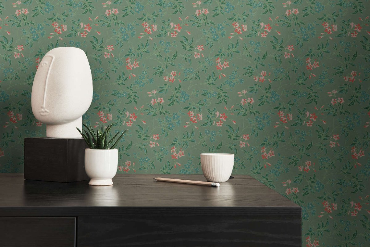 Vliestapete Art of Eden 390631 - Blumentapete Muster - Grün, Rot