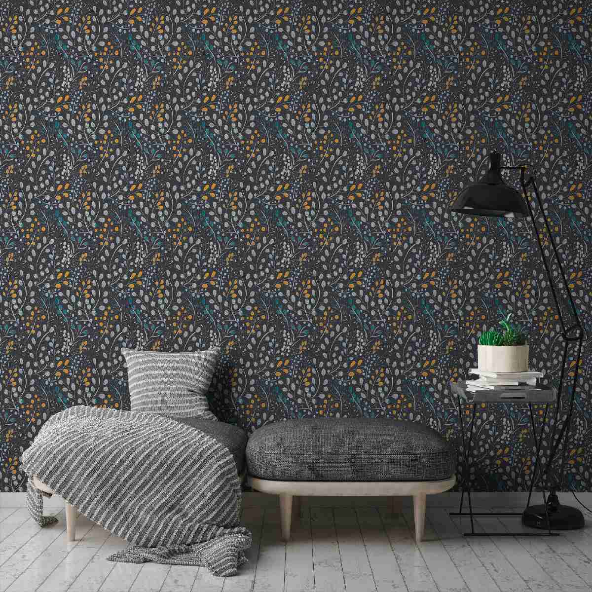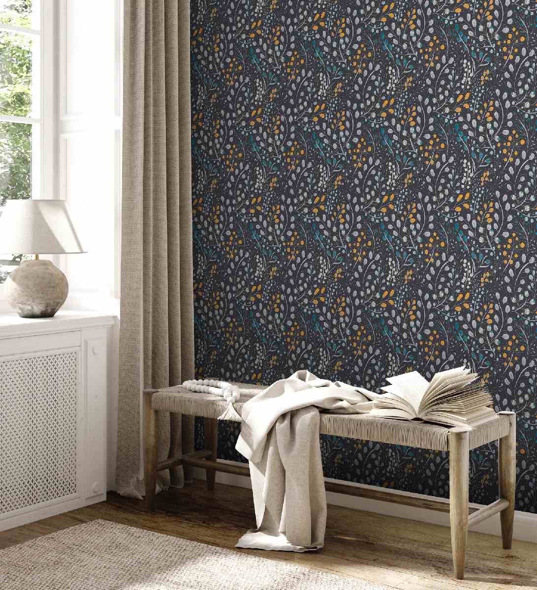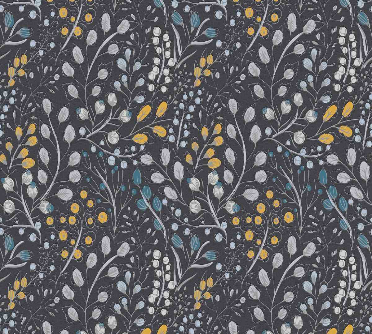 Vliestapete Attractive II 388474 - Floral Muster - Schwarz, Gelb