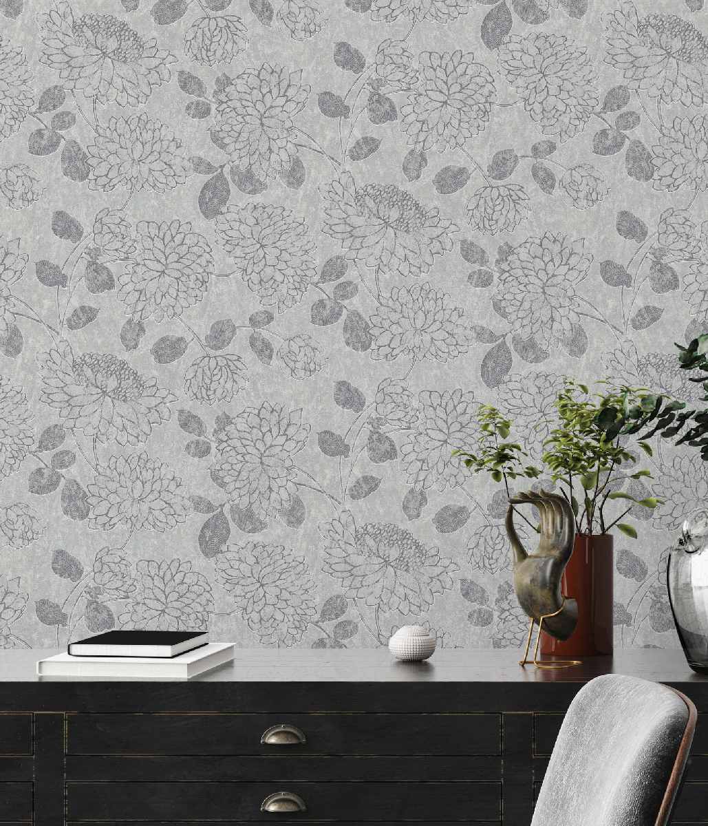 Vliestapete Attractive II 390251 - Floral Muster - Hellgrau, Silber