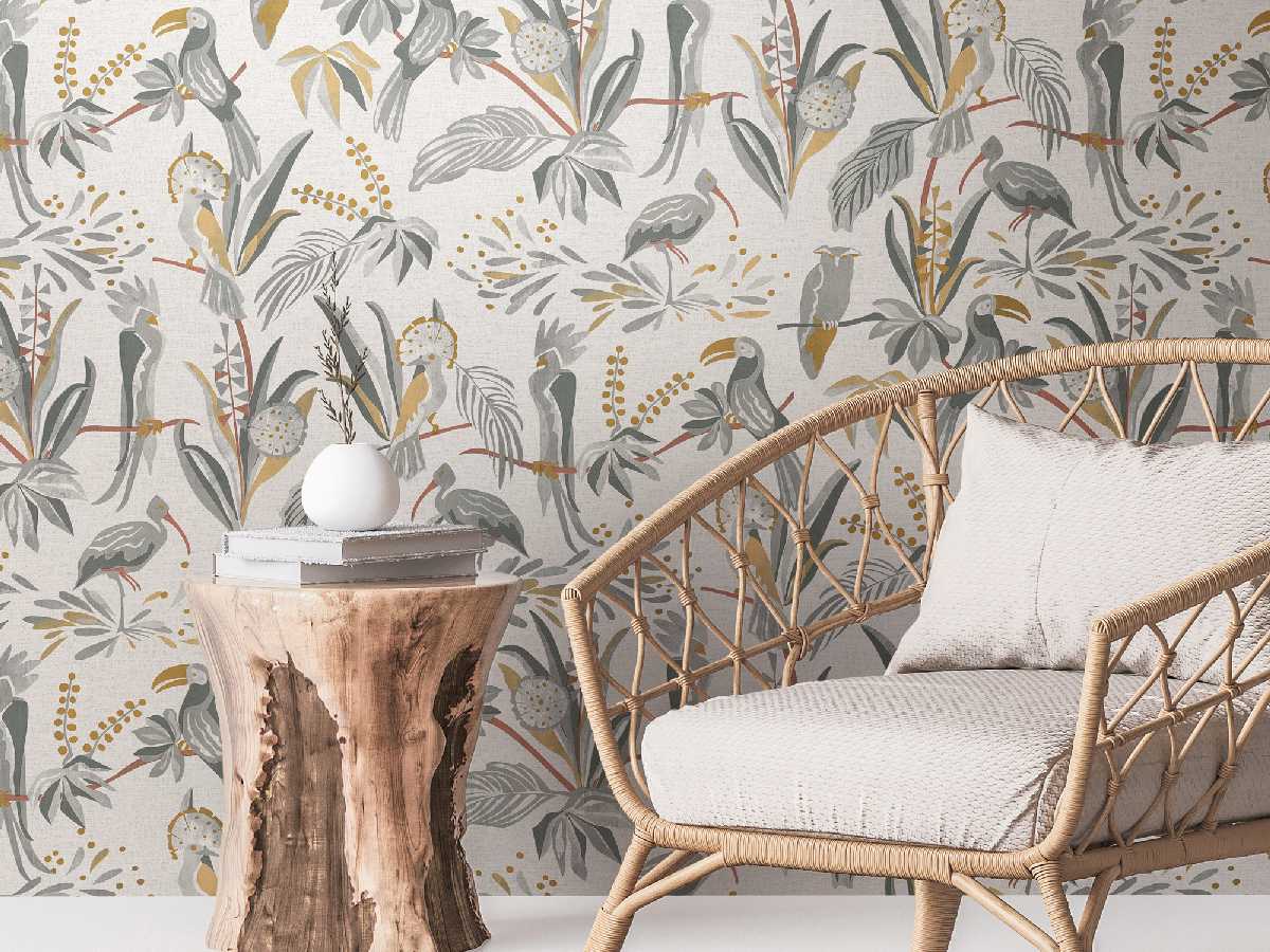 Vliestapete House of Turnowsky 388984 - Vogeltapete Muster - Grau, Gelb