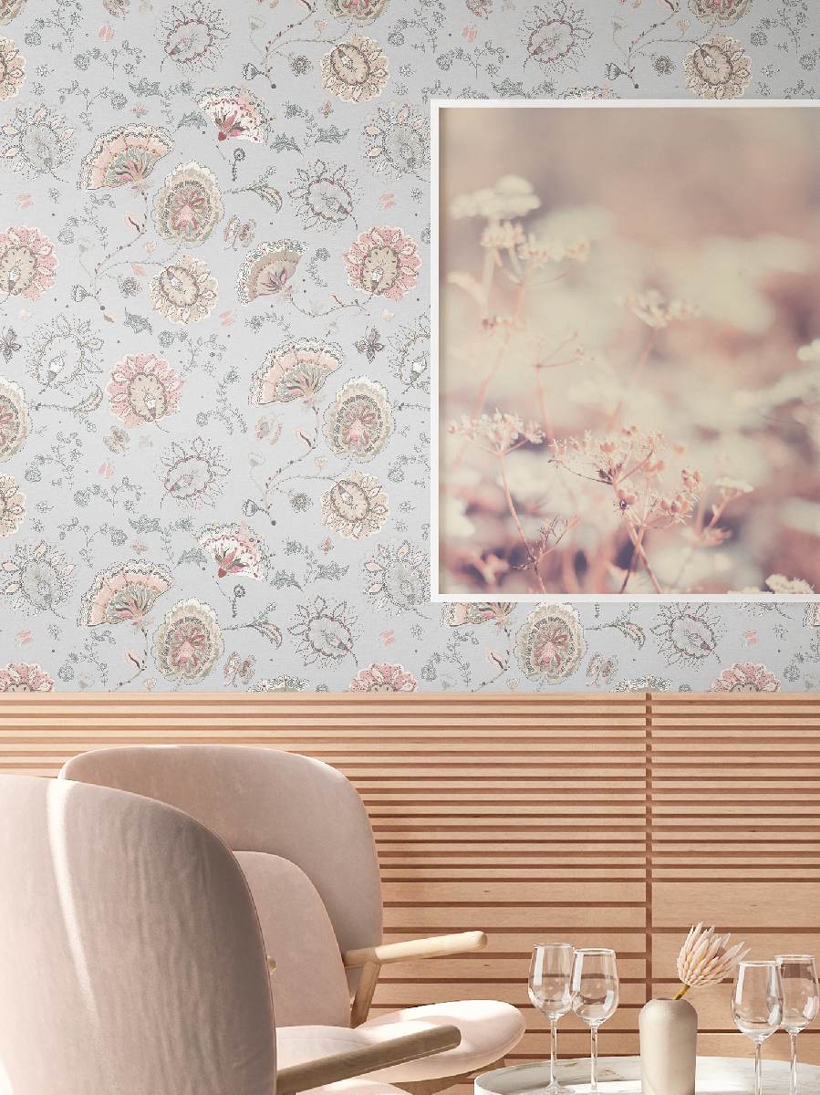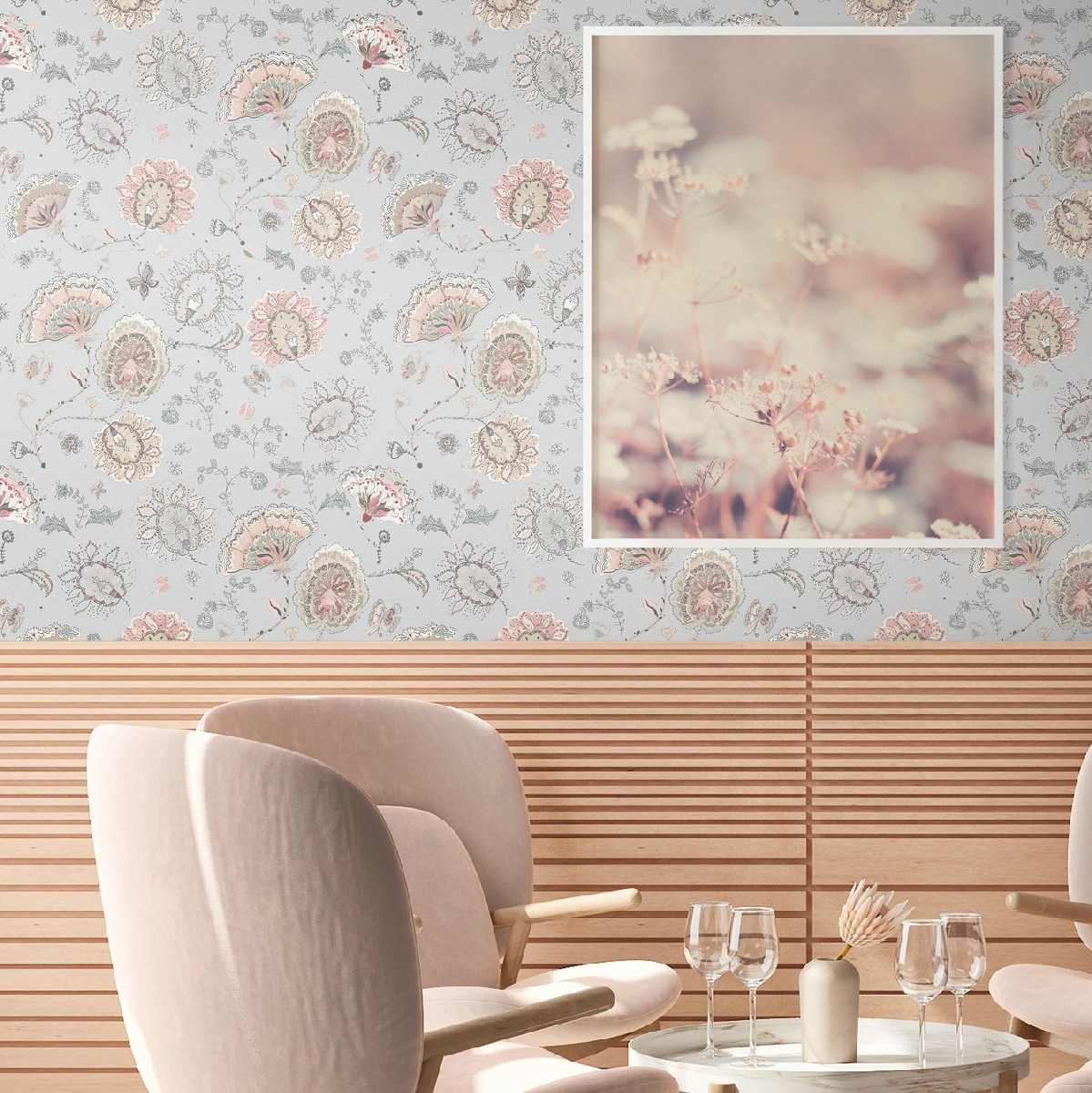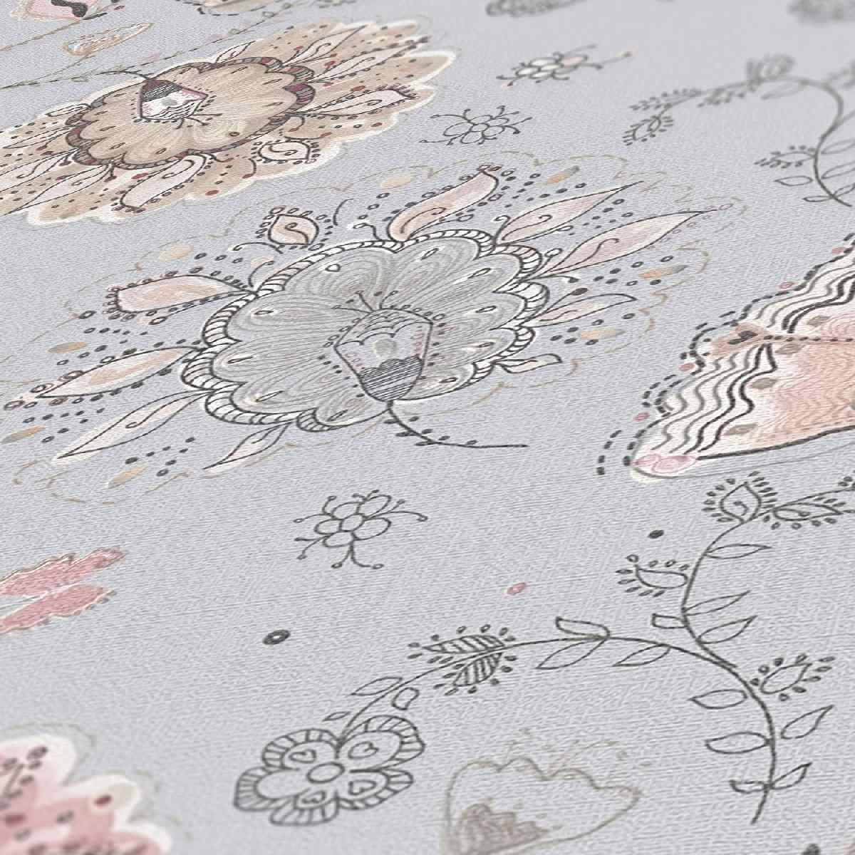 Vliestapete House of Turnowsky 388993 - Florale Tapete Muster - Grau, Rosa