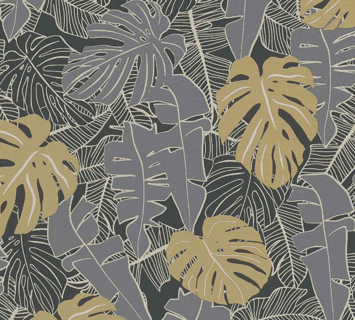 Vliestapete House of Turnowsky 389051 - Palmentapete Muster – Schwarz, Gold