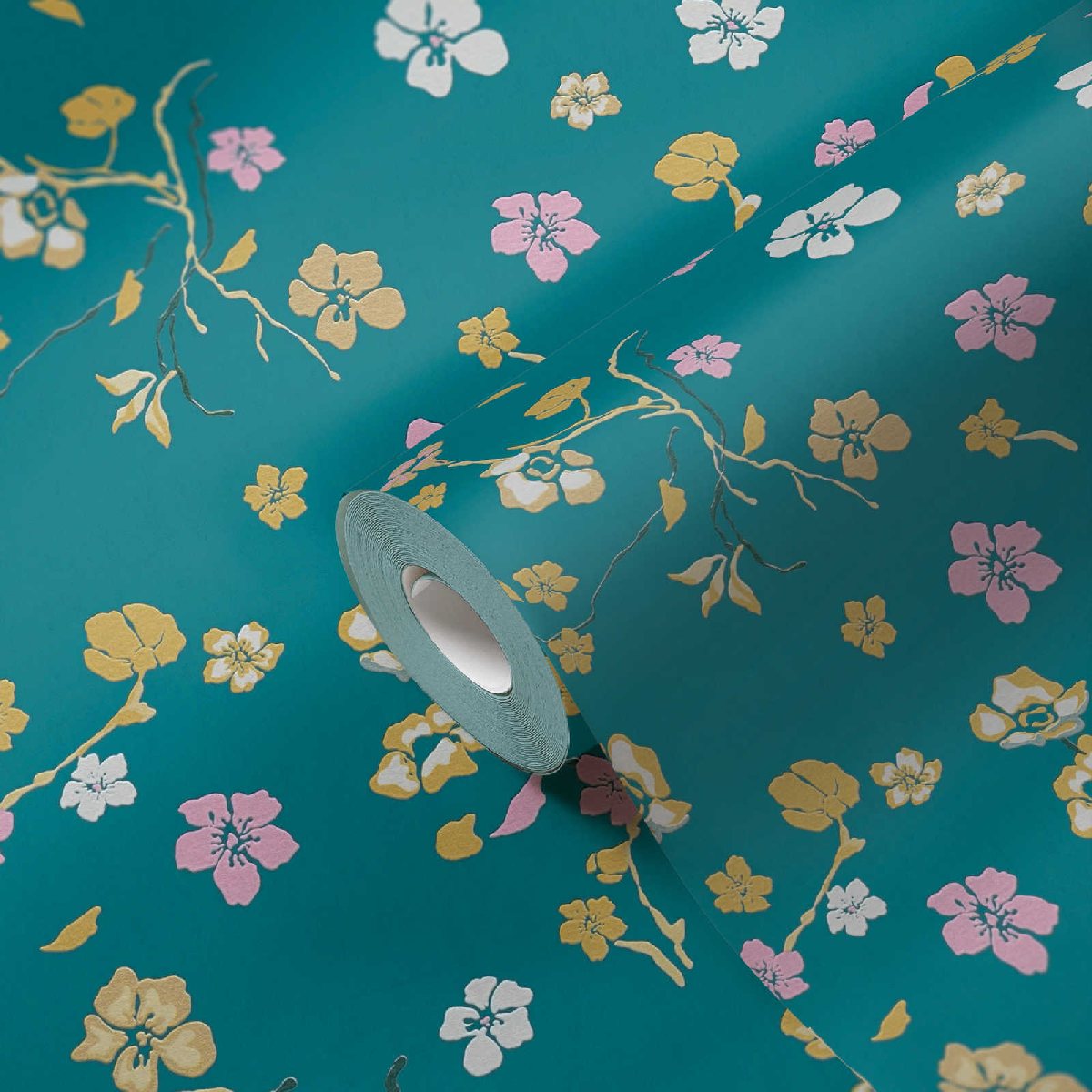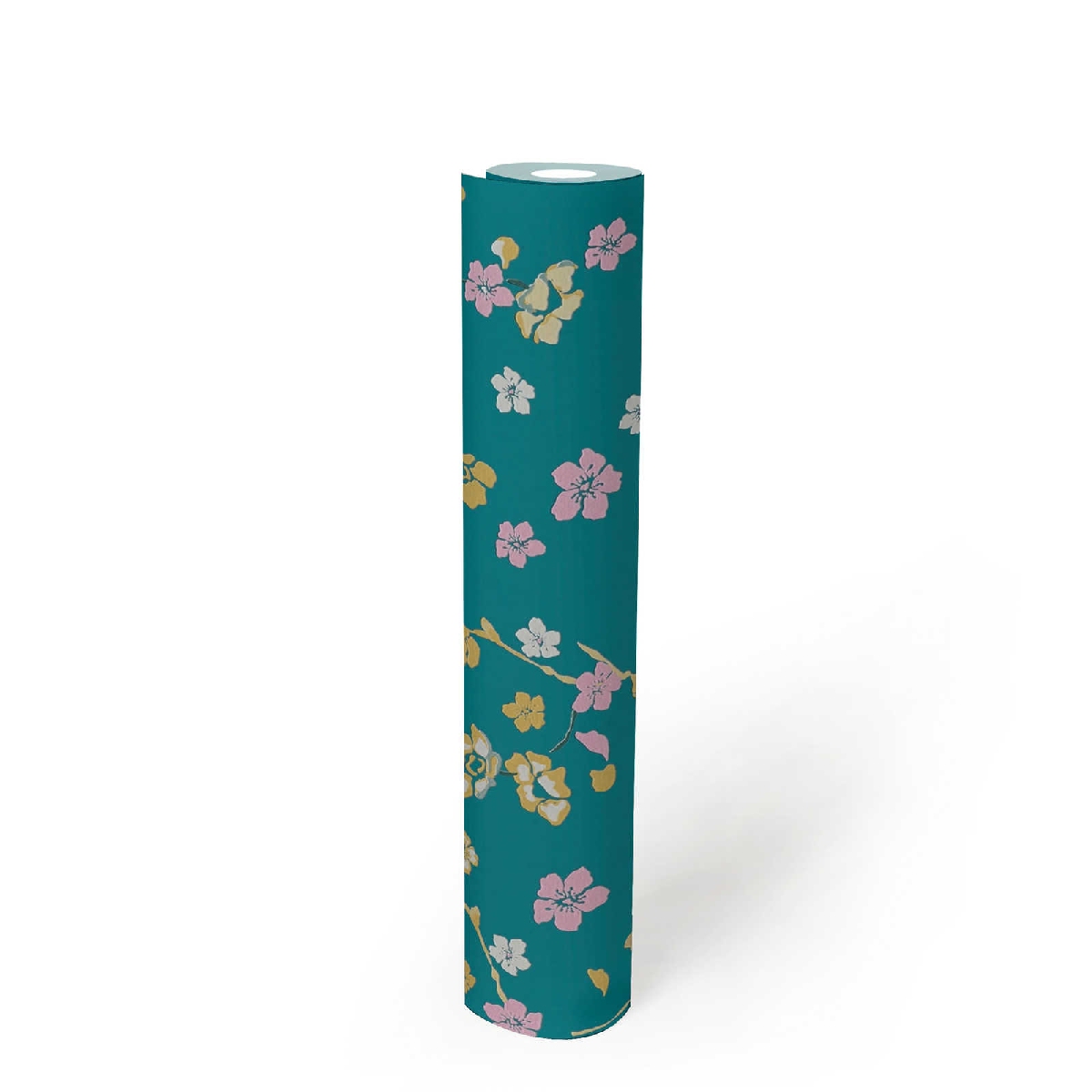 Vliestapete House of Turnowsky 389072 - Florale Tapete Muster – Türkis, Gelb