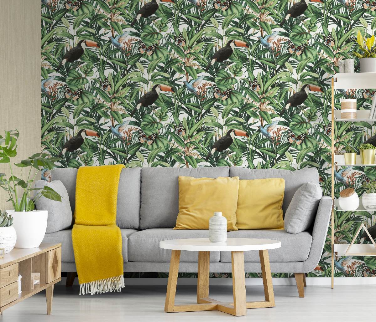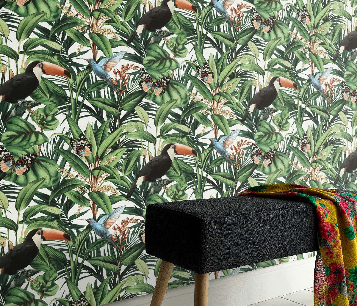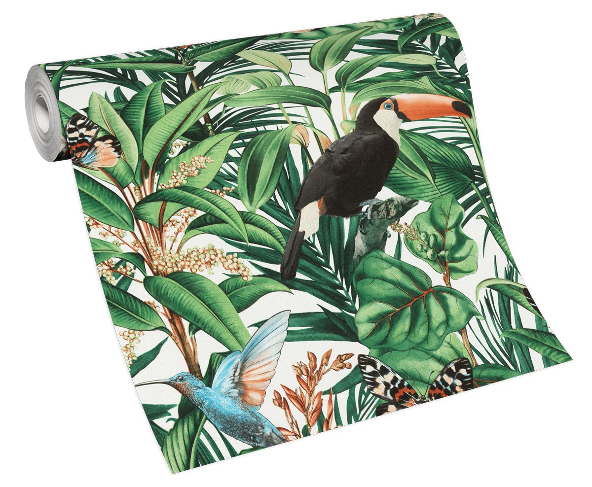 Vliestapete WPE-901276 - Blumen und Blätter,Tiere,Grafische Muster - Grün,Mehrfarbig