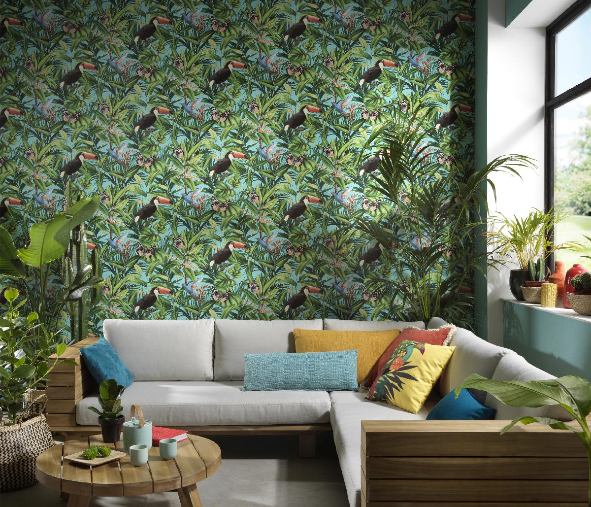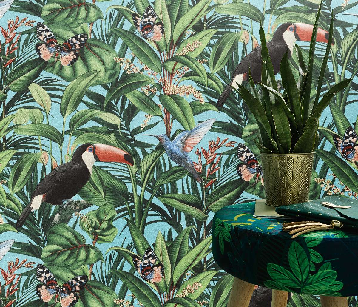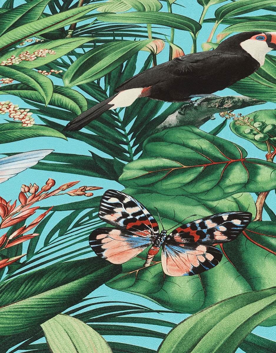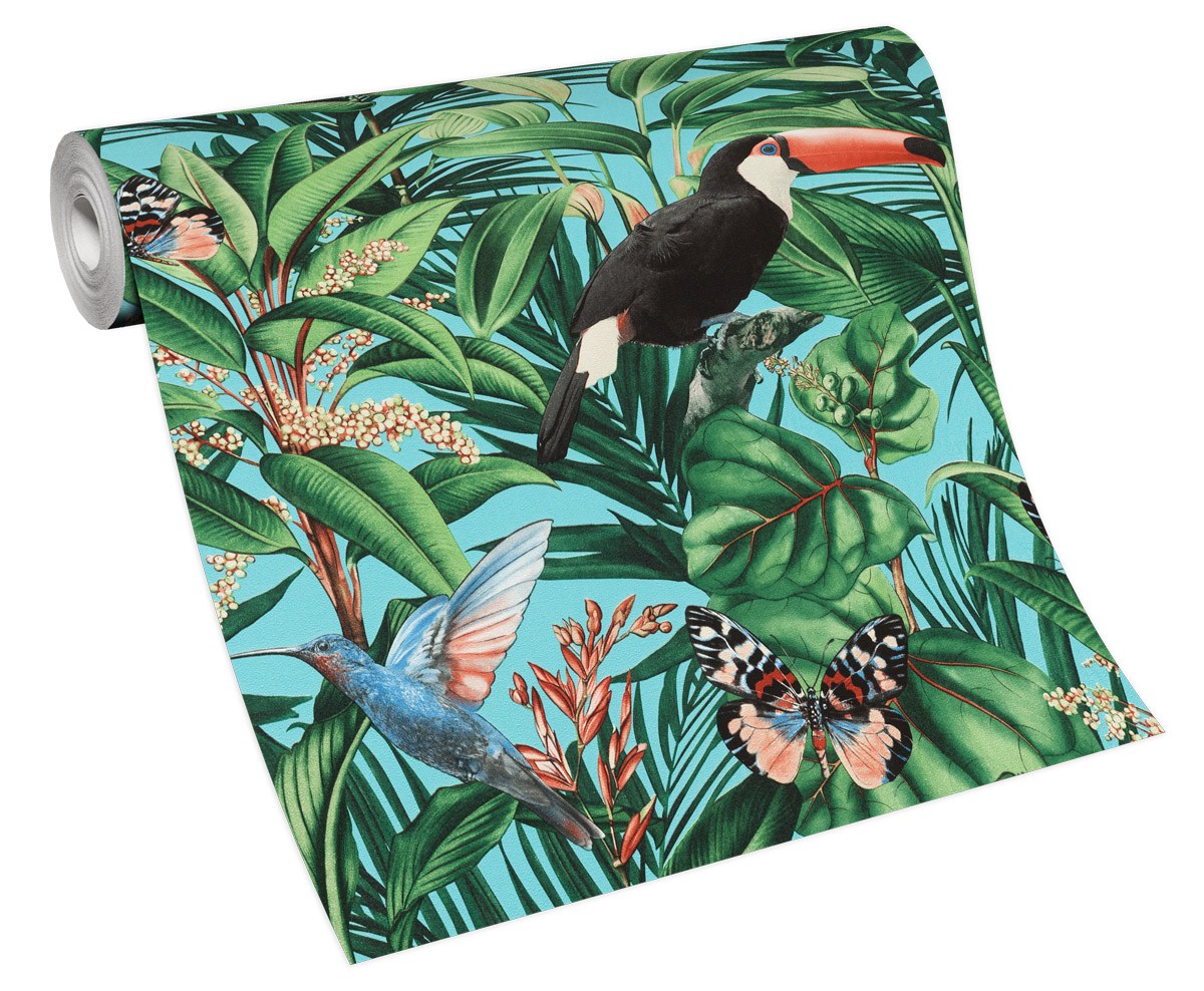 Vliestapete WPE-901277 - Blumen und Blätter,Tiere,Grafische Muster - Grün,Mehrfarbig