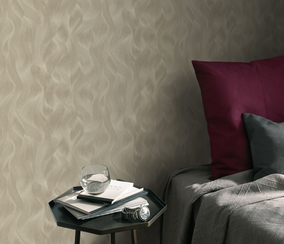 Die Tapete wird aus Vliesmaterial, d.h. aus Faserstoff, hergestellt, was die Festigkeit, Farbechtheit und vor allem die lange Lebensdauer der Tapete garantiert. Tapeten können das Aussehen Ihres Zimmers leicht verändern und ihm je nach dem von Ihnen gewählten Muster eine völlig neue Atmosphäre verleihen. Der Vorteil von Vliesmaterial ist, dass sie leicht anzubringen und zu entfernen sind und dass sie atmungsaktiv sind.