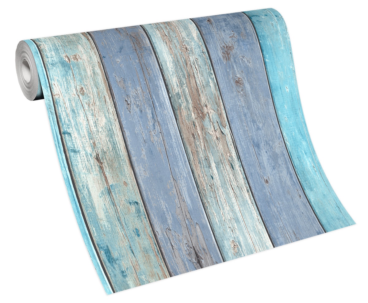 Vliestapete WPE-901417 - Holz, Stein, Verkleidung - Blau,Beige,Braun,Grau