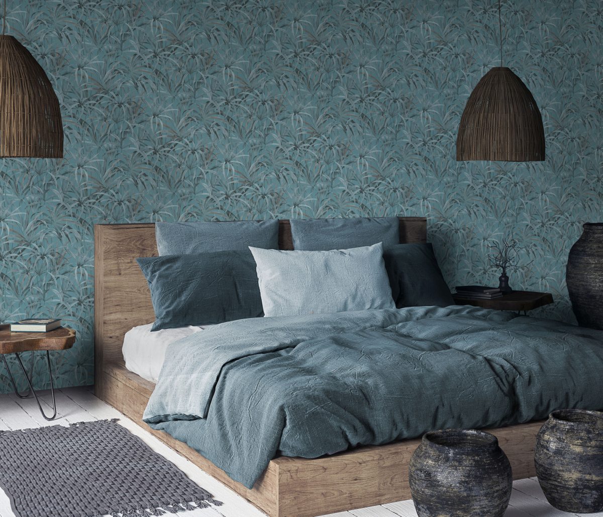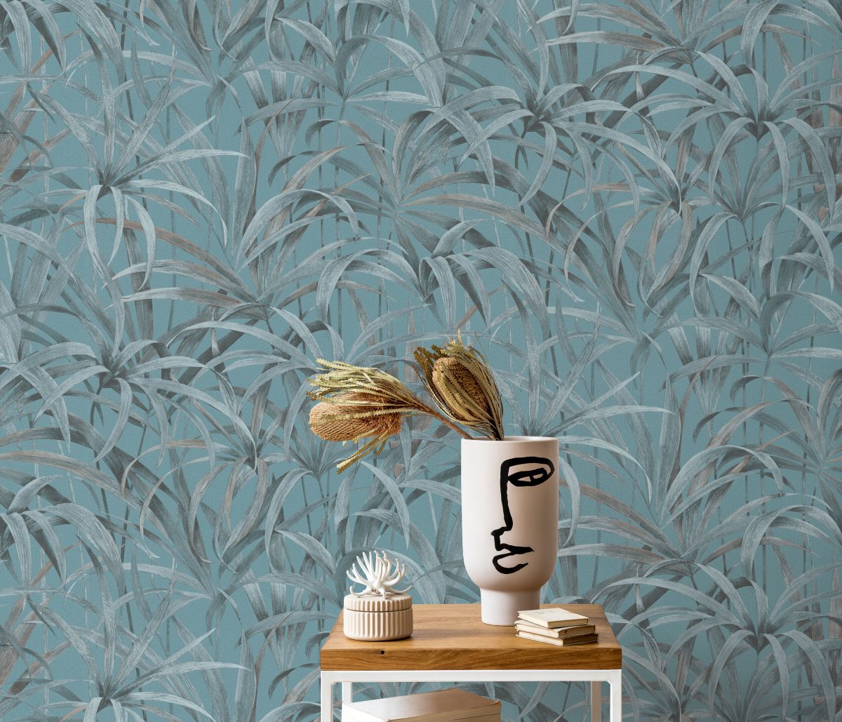 Vliestapete WPE-901455 - Blumen und Blätter - Türkis,