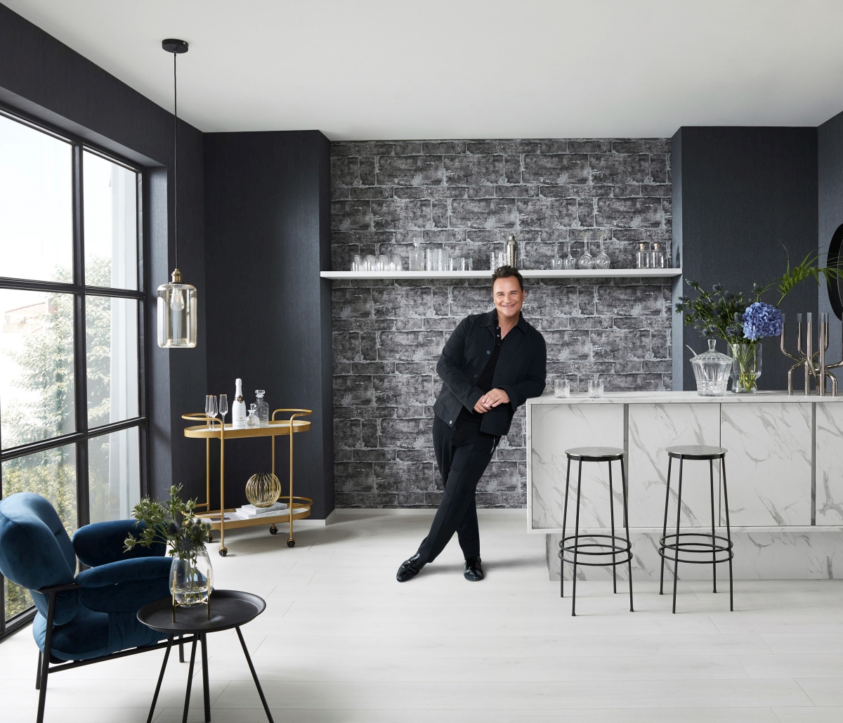 6. Rollen Sie die Tapetenbahn in Abschnitten ab und drücken Sie sie mit einer Tapetenbürste an die Wand, um sie zu glätten.