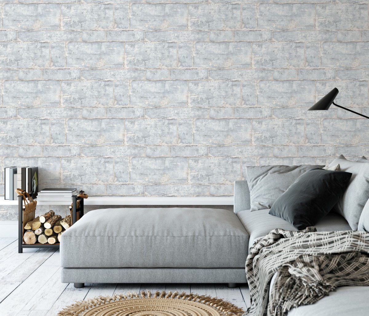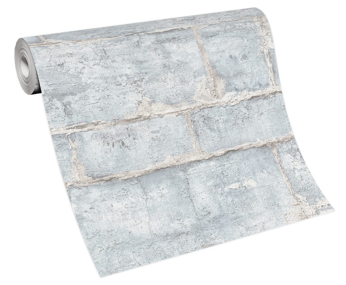 Vliestapete WPE-901504 - Holz, Stein, Verkleidung - Blau,Creme,Grau