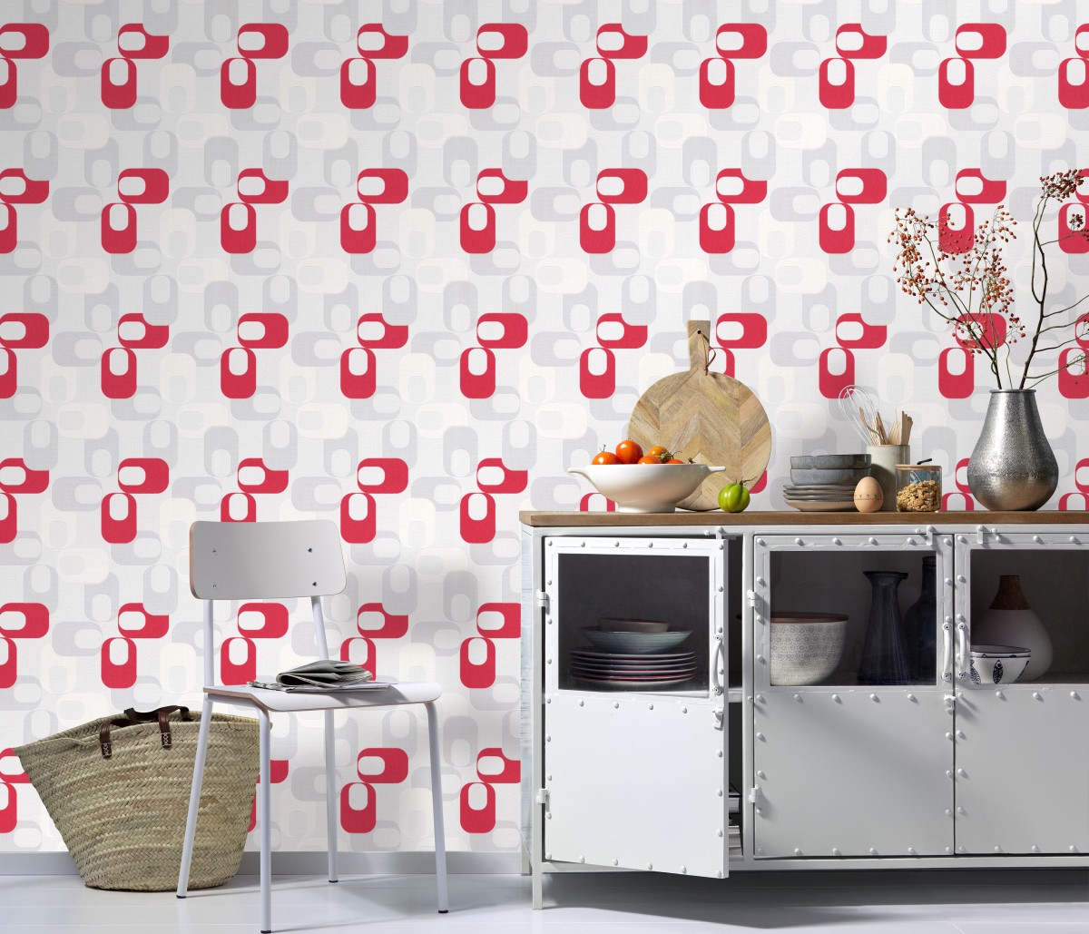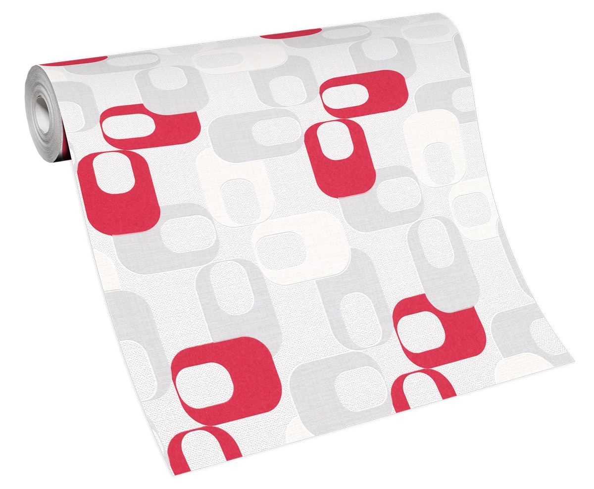 Vliestapete WPE-901510 - Geometrische Muster - Rot,Weiss,Grau