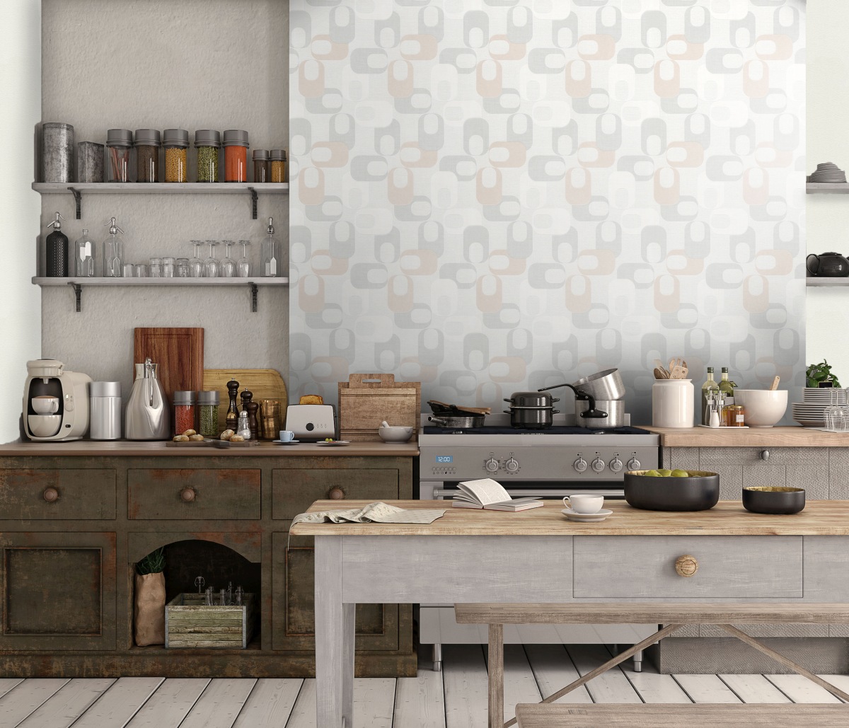 Vliestapete WPE-901511 - Geometrische Muster - Beige,Creme,Grau