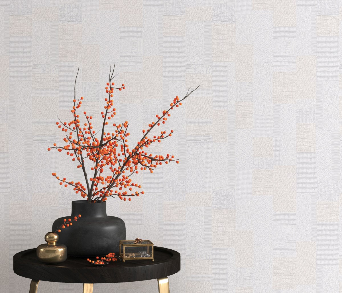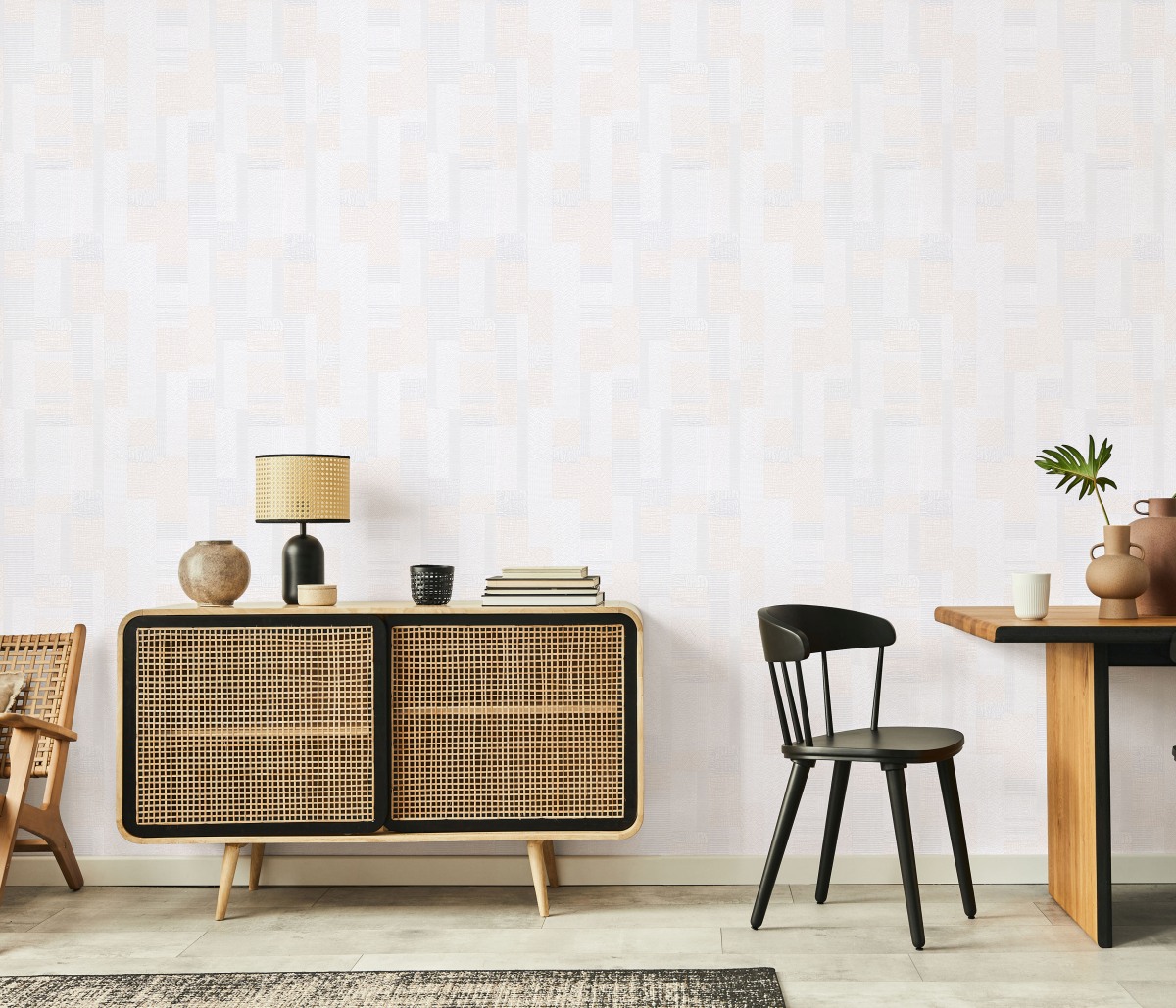 Vliestapete WPE-901544 - Dekorativ Muster,Quadrate und Rechtecke - Weiss,Beige,Grau