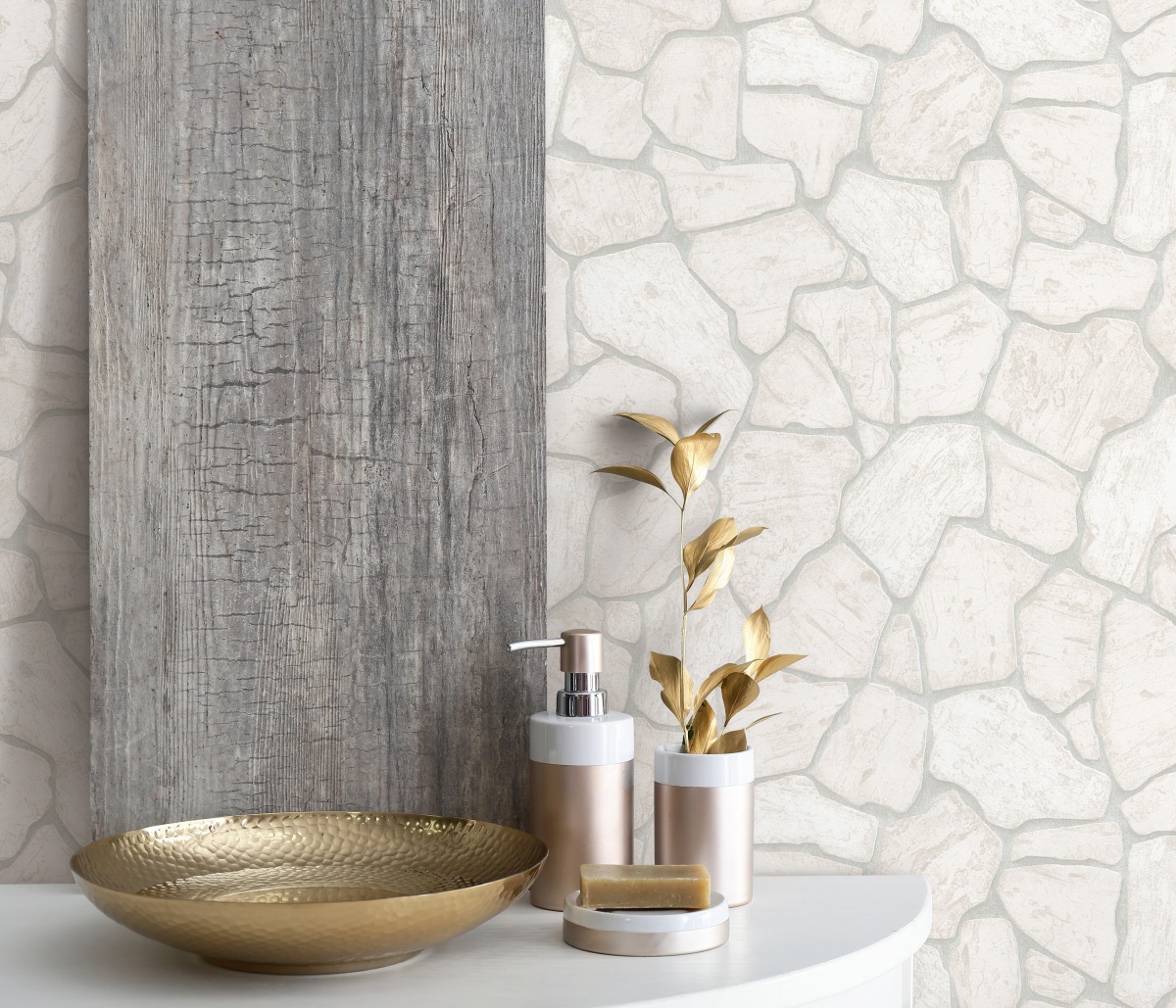 Vliestapete WPE-901546 - Holz, Stein, Verkleidung - Weiss,Creme,Grau