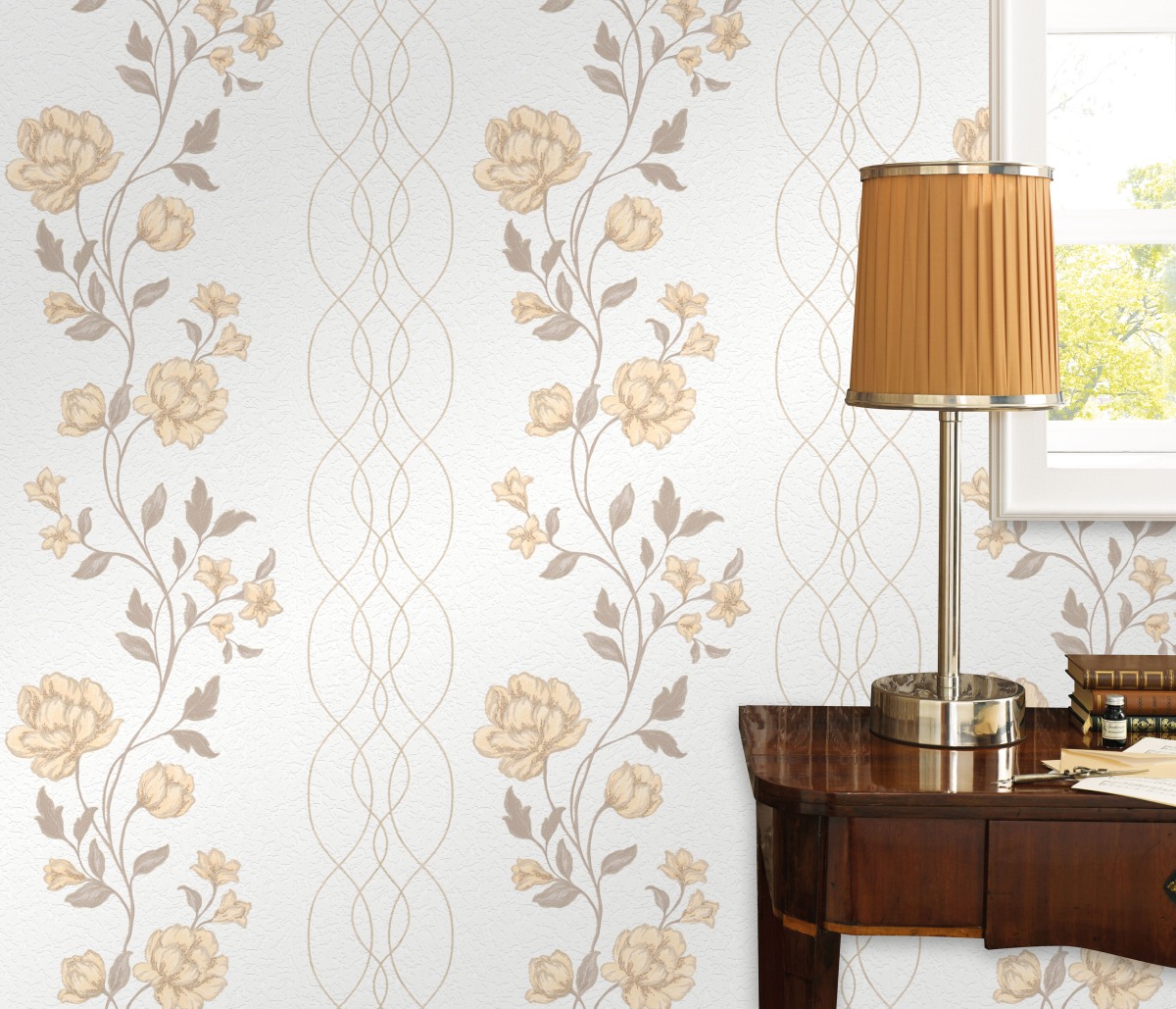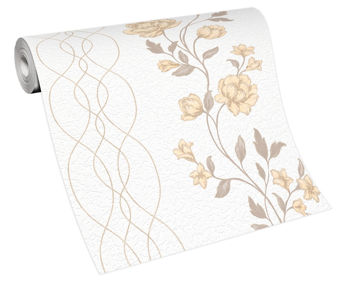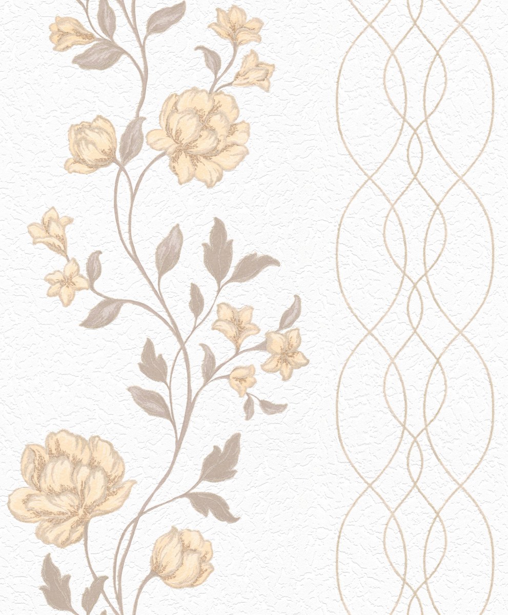 Vliestapete WPE-901547 - Blumen und Blätter,Grafische Muster - Creme,Gelb,Braun