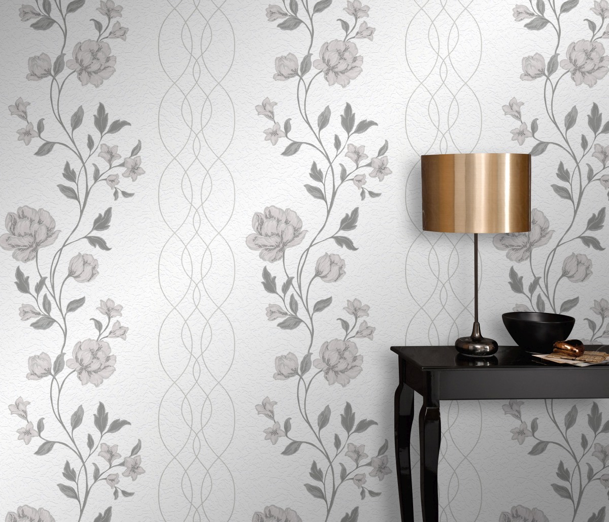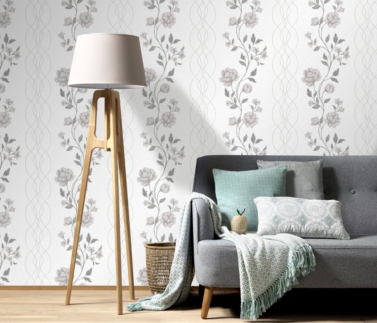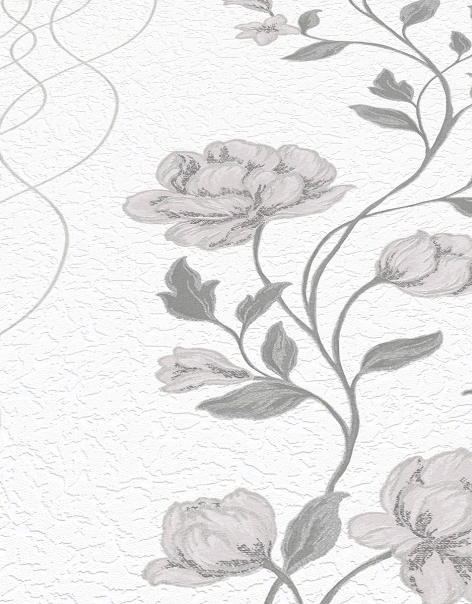 Vliestapete WPE-901548 - Blumen und Blätter,Grafische Muster - Weiss,Grau