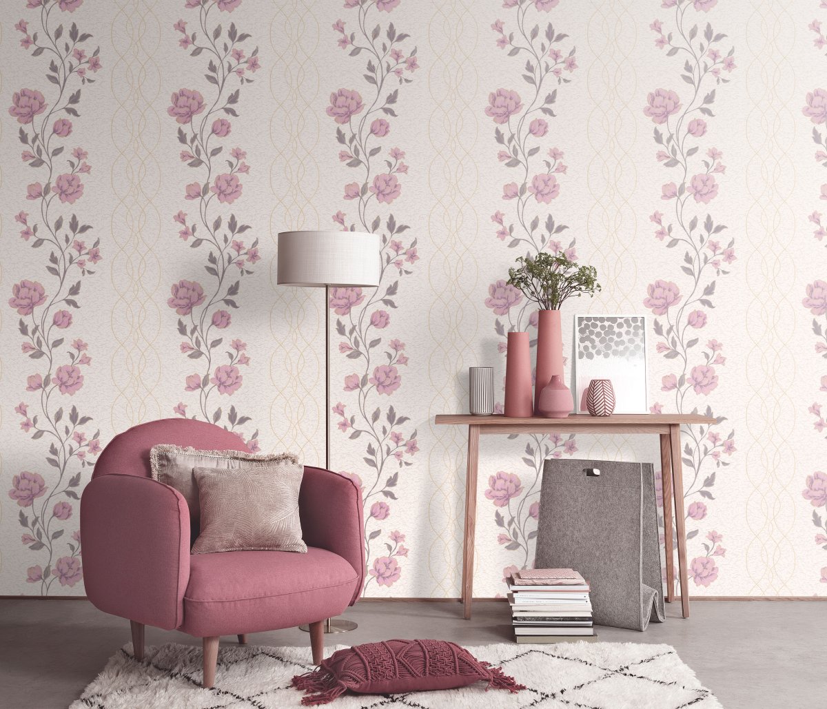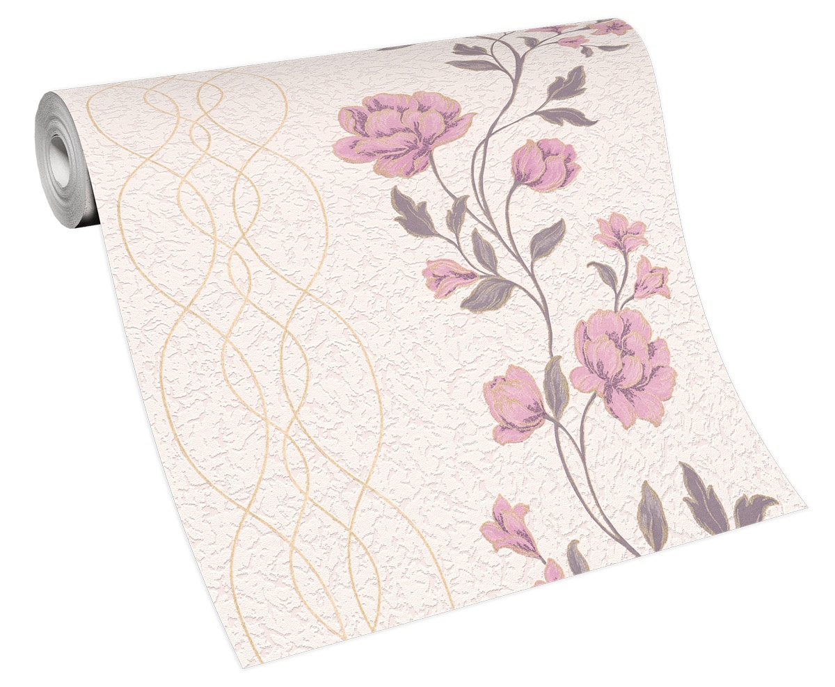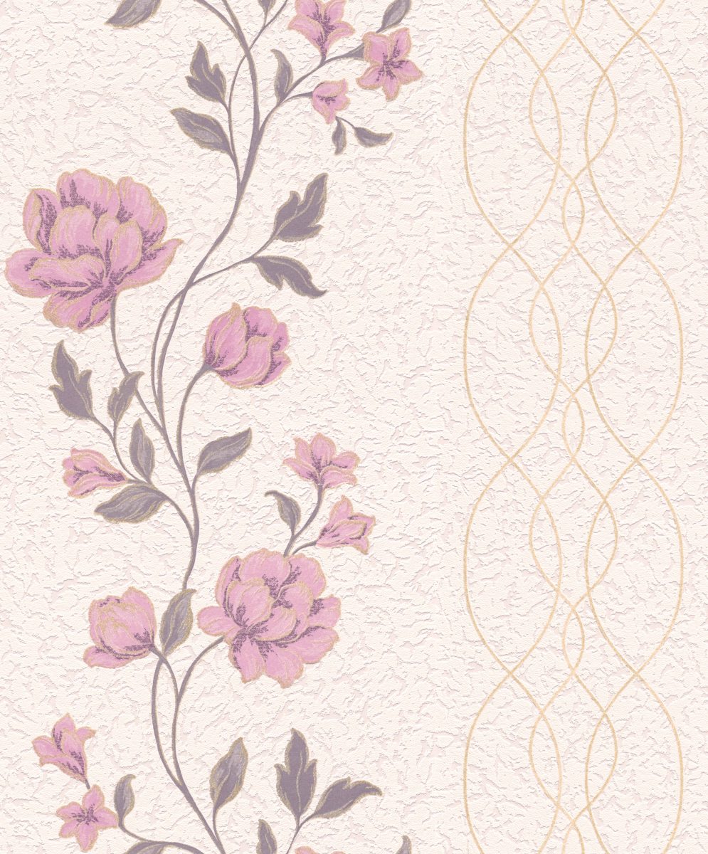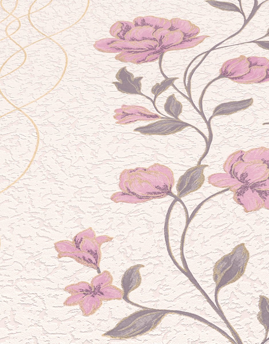Vliestapete WPE-901549 - Blumen und Blätter,Grafische Muster - Gold,Beige,Braun,Rosa