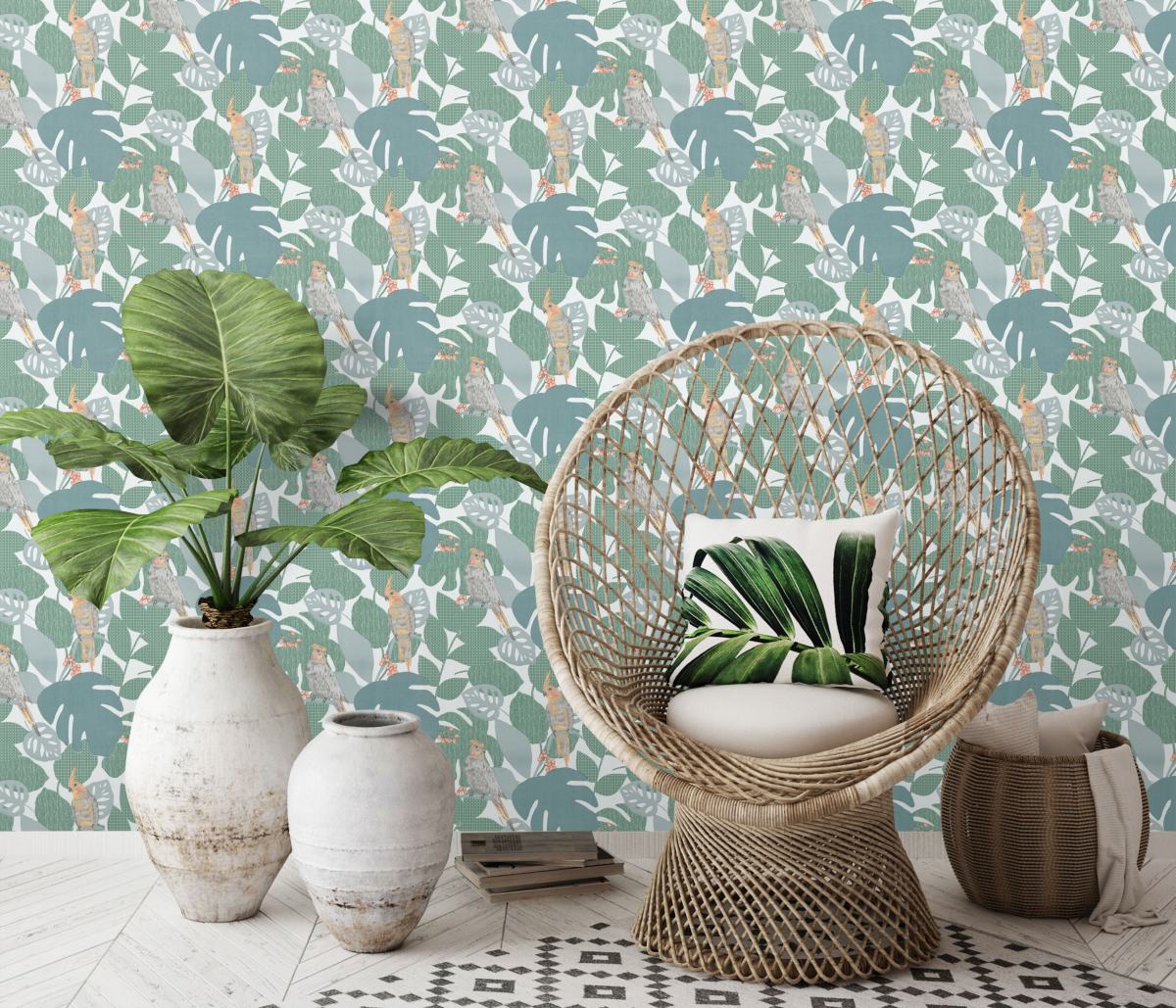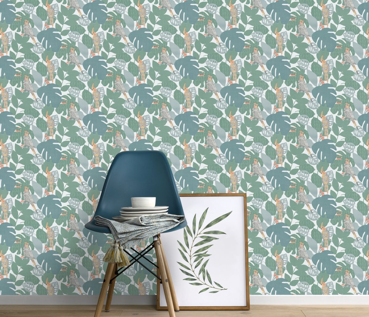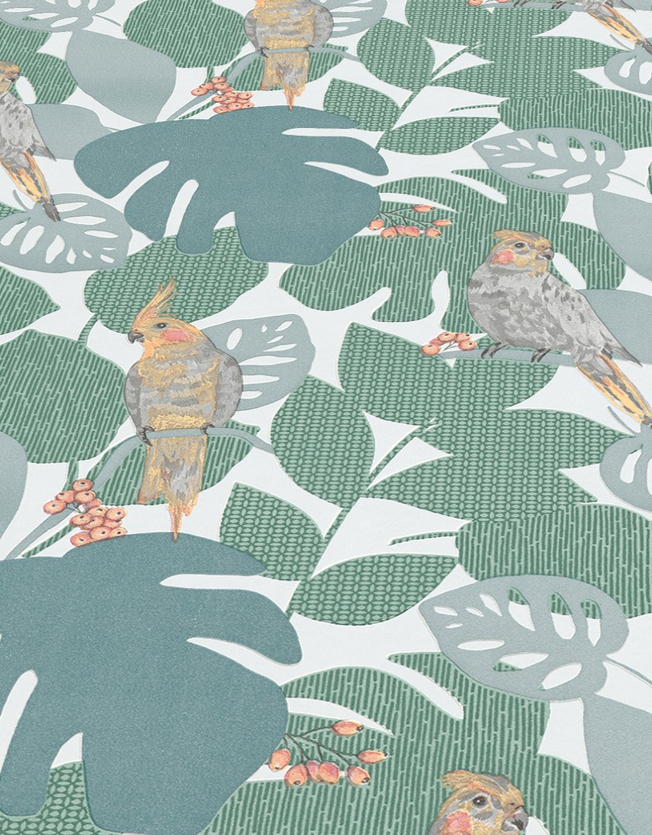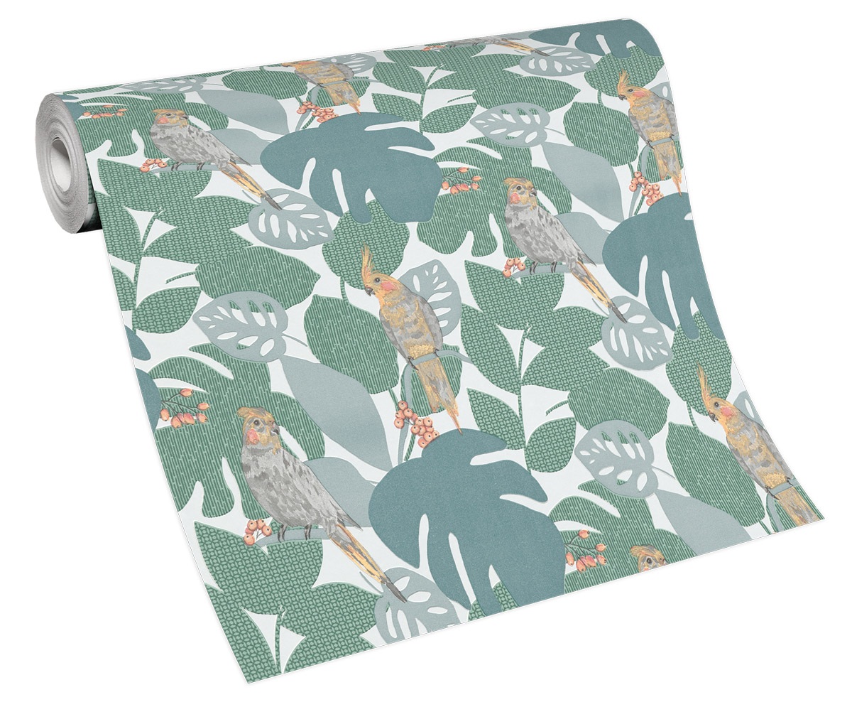 Vliestapete WPE-901575 - Blumen und Blätter,Tiere - Grün,Mehrfarbig,Weiss