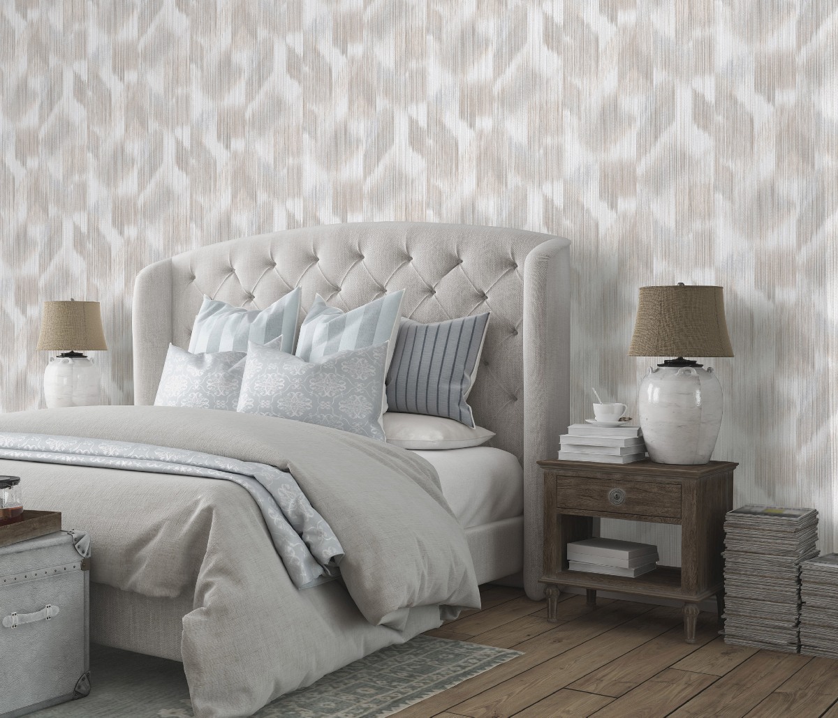 Die Tapete wird aus Vliesmaterial, d.h. aus Faserstoff, hergestellt, was die Festigkeit, Farbechtheit und vor allem die lange Lebensdauer der Tapete garantiert. Tapeten können das Aussehen Ihres Zimmers leicht verändern und ihm je nach dem von Ihnen gewählten Muster eine völlig neue Atmosphäre verleihen. Der Vorteil von Vliesmaterial ist, dass sie leicht anzubringen und zu entfernen sind und dass sie atmungsaktiv sind.