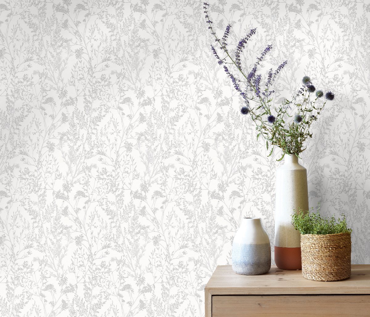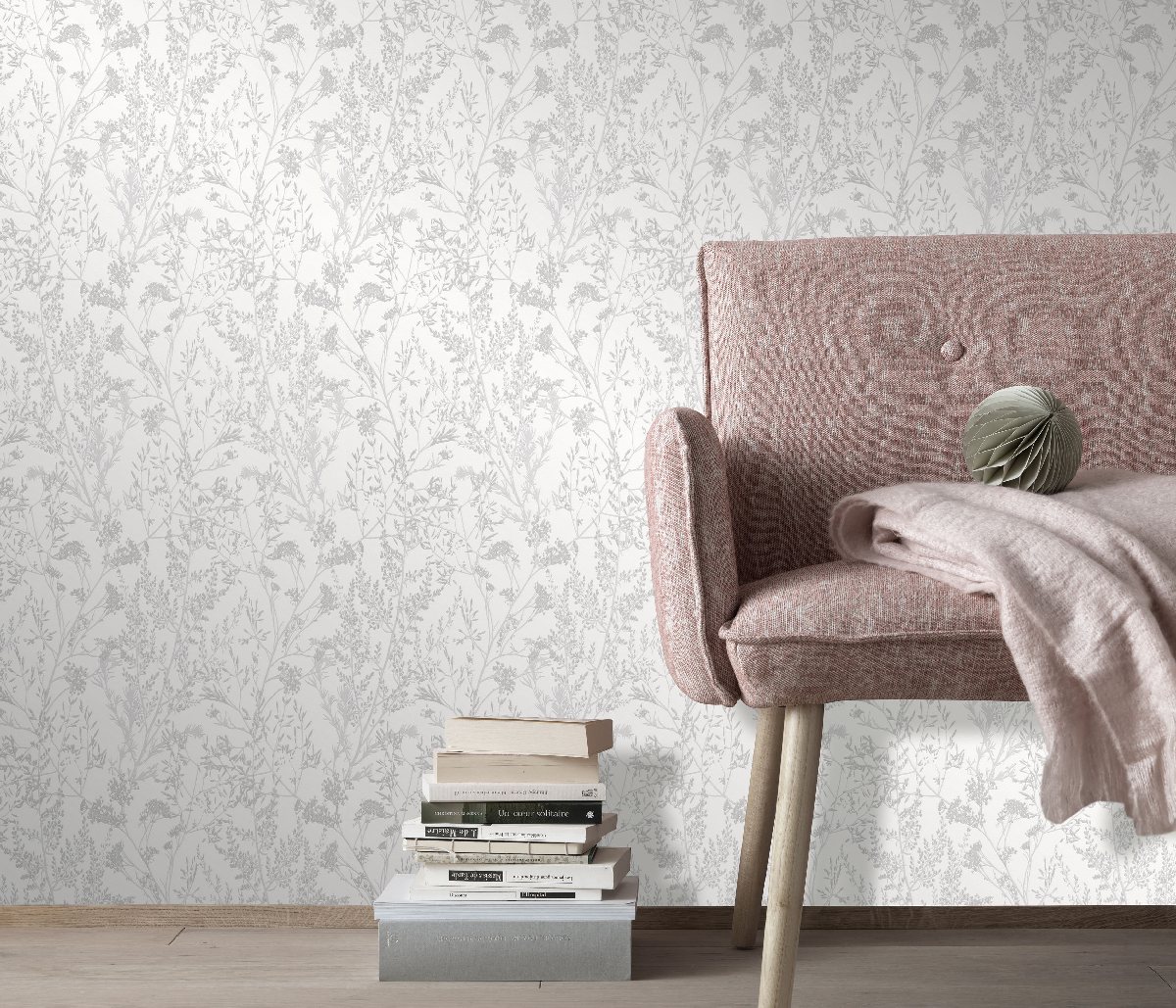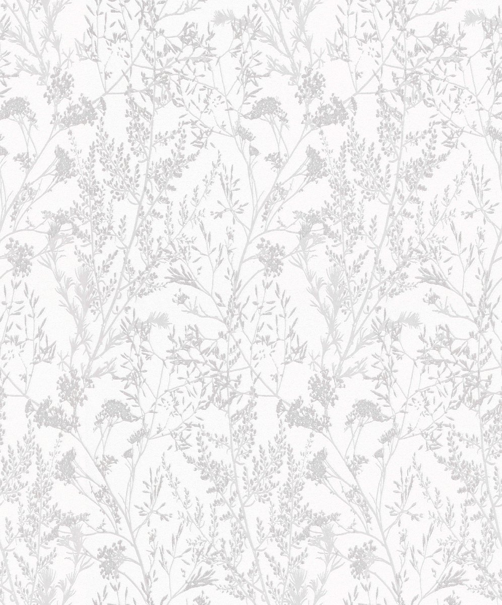 Vliestapete WPE-901597 - Blumen und Blätter - Weiss,Metallics