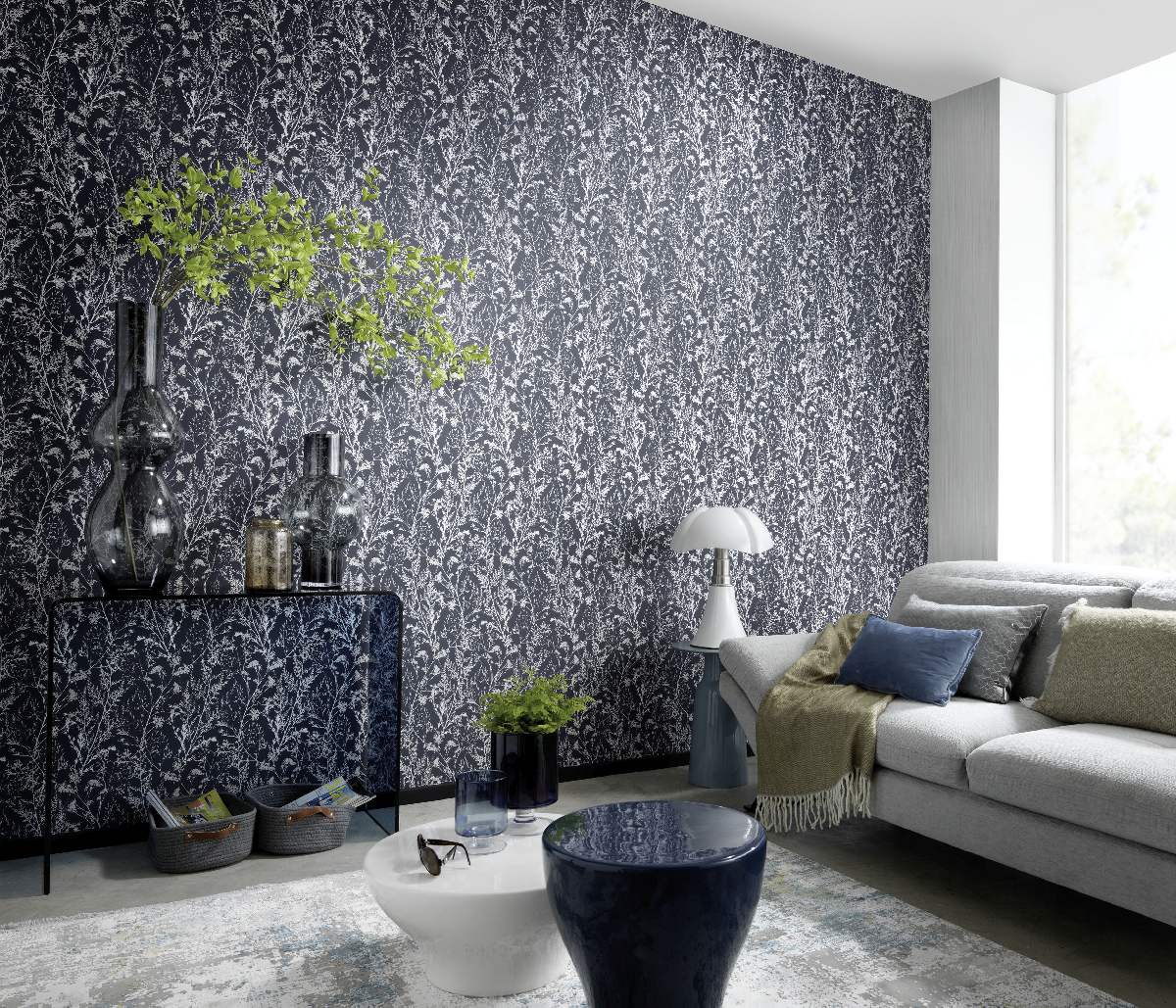 Vliestapete WPE-901598 - Blumen und Blätter - Schwarz,Metallics