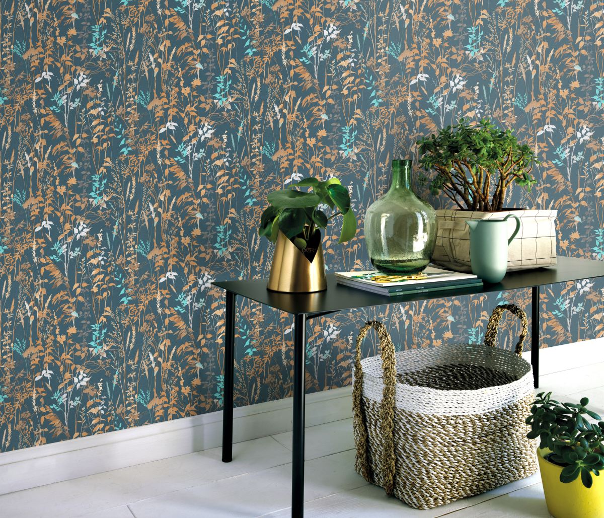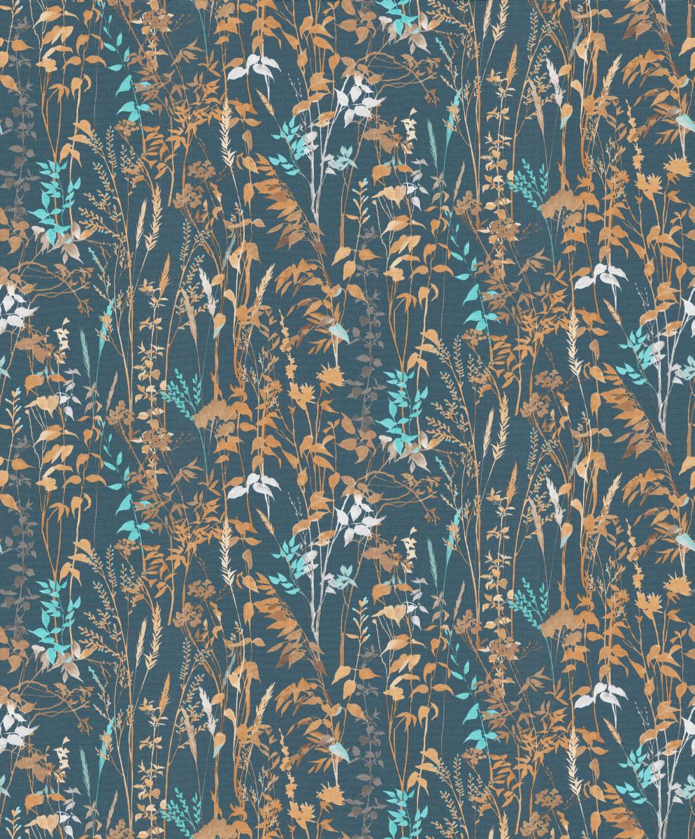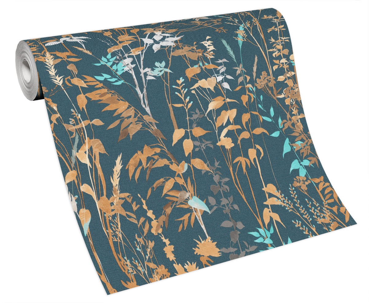 Vliestapete WPE-901621 - Blumen und Blätter - Blau,Beige,Braun