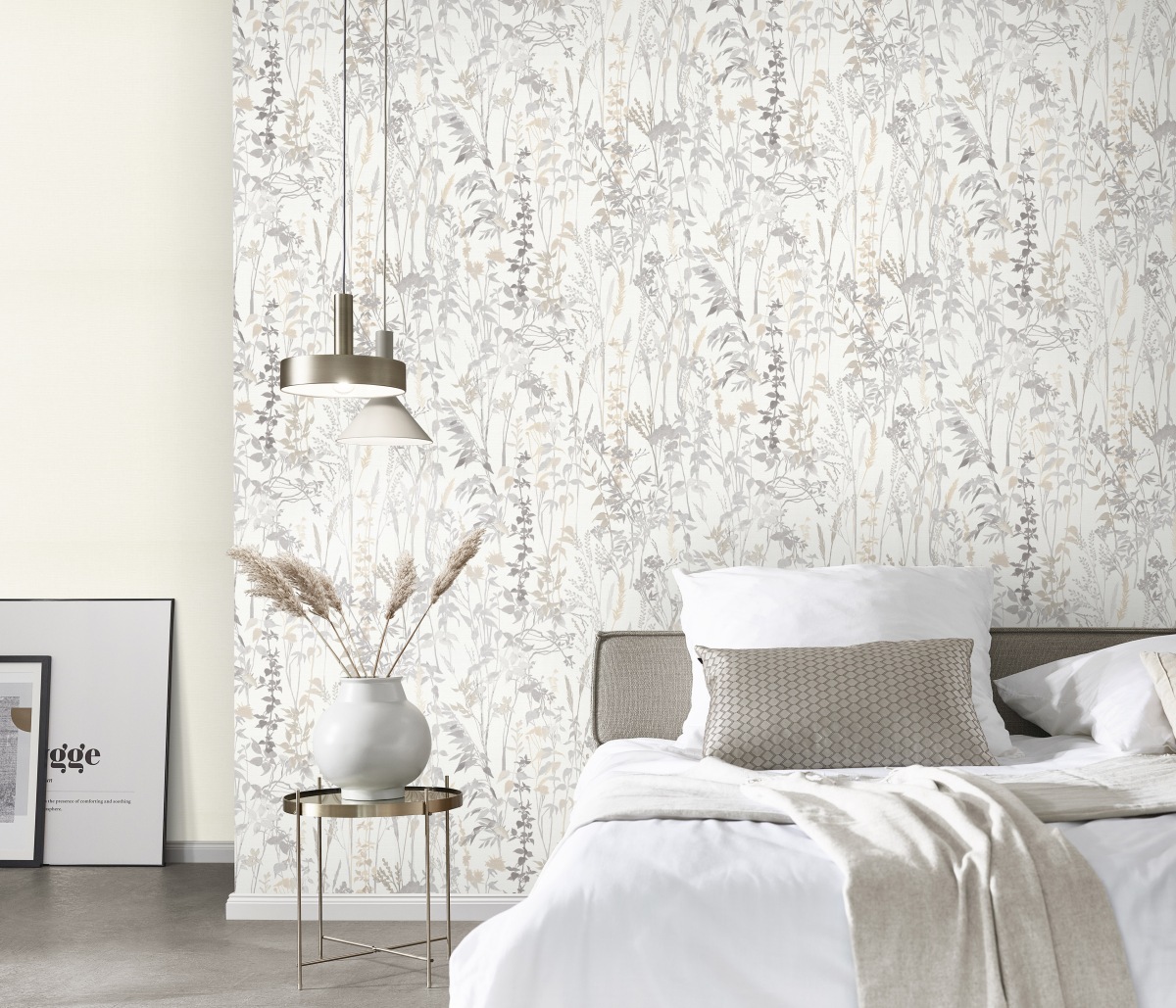 Vliestapete WPE-901622 - Blumen und Blätter - Weiss,Beige,Creme,Grau