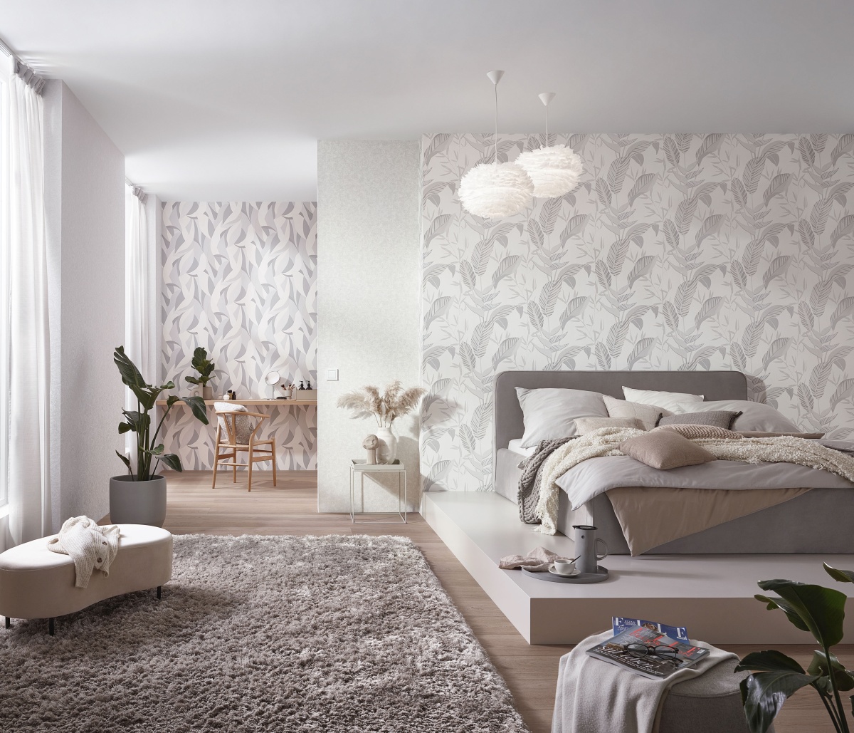 Vliestapete WPE-901782 - Blumen und Blätter,Natur - Weiss,Creme,Grau