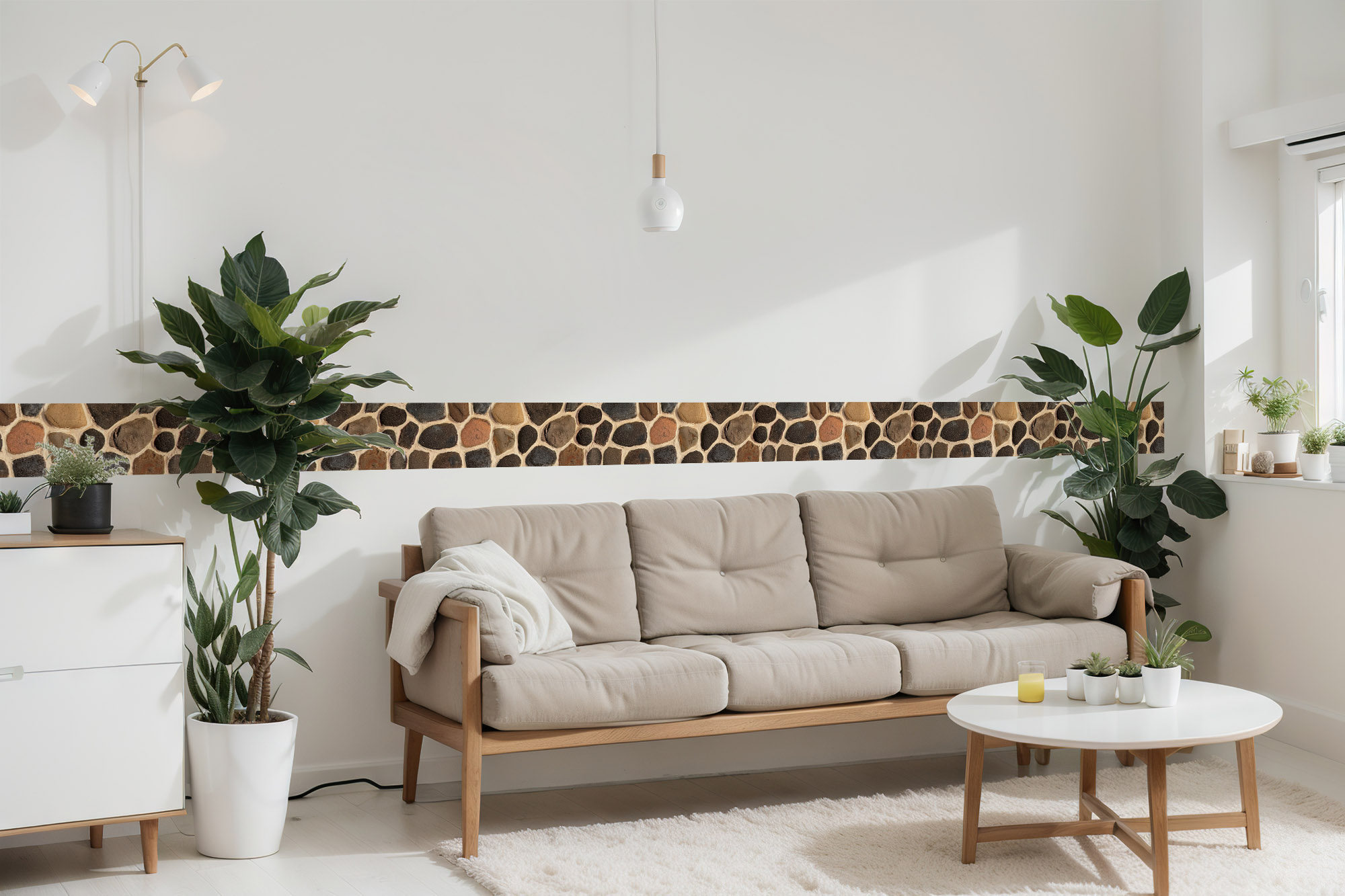 Anschließend können Sie die Größe des Randes auf der Fläche ausmessen, auf die Sie ihn kleben möchten. Das Aufkleben selbst ist ganz einfach - einfach das rückseitige Schutzpapier abziehen und die selbstklebende Bordüre einfach aufkleben. Kleben Sie die Bordüre mit der Handfläche oder einem Tuch fest auf den Untergrund, sodass sie vollflächig haftet.