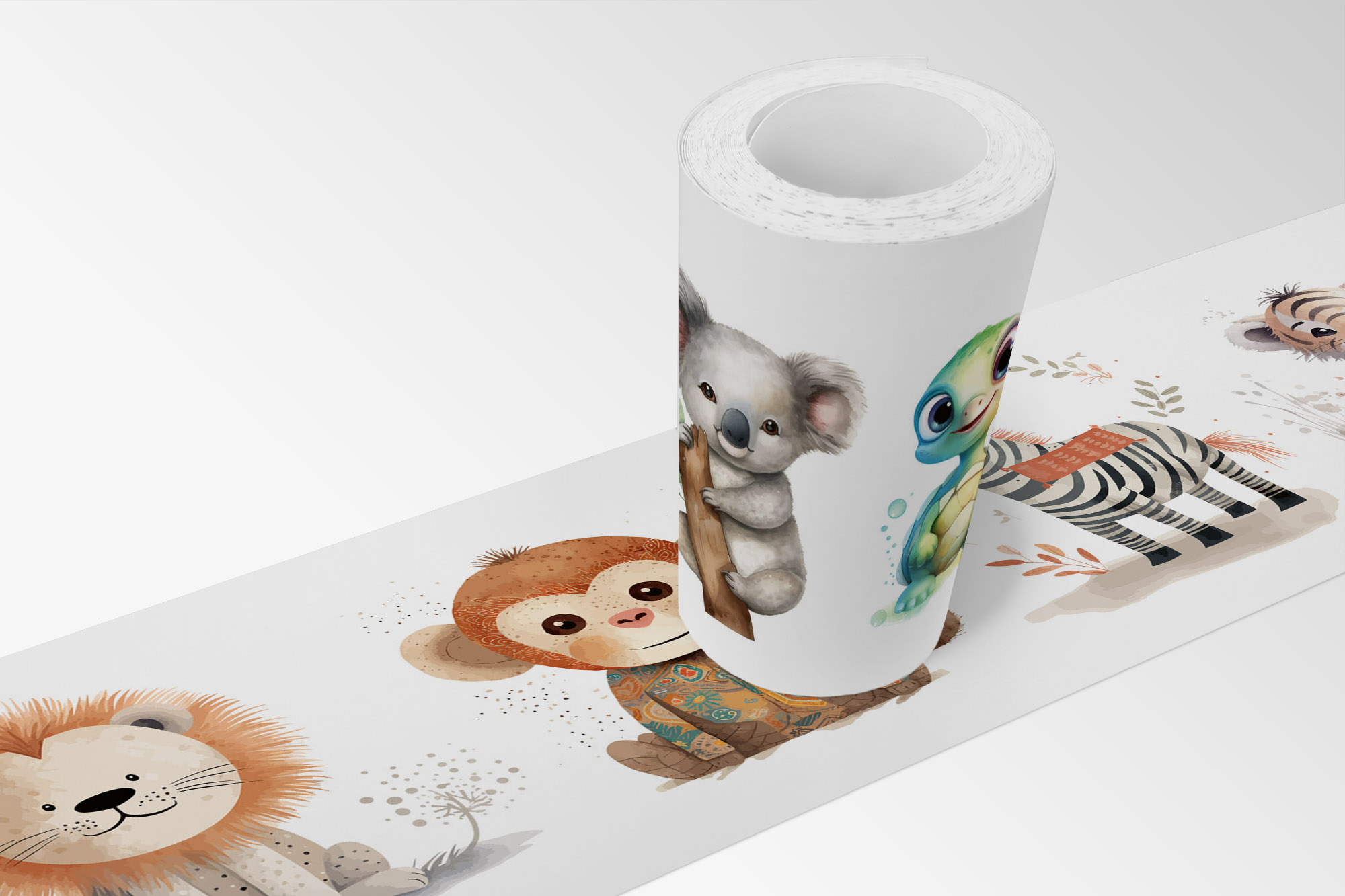 Anschließend können Sie die Größe des Randes auf der Fläche ausmessen, auf die Sie ihn kleben möchten. Das Aufkleben selbst ist ganz einfach - einfach das rückseitige Schutzpapier abziehen und die selbstklebende Bordüre einfach aufkleben. Kleben Sie die Bordüre mit der Handfläche oder einem Tuch fest auf den Untergrund, sodass sie vollflächig haftet.