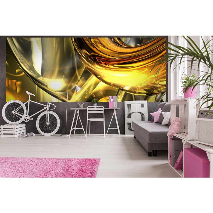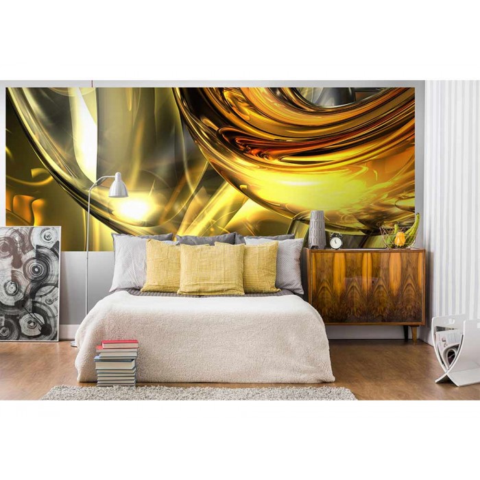 Vlies Fototapete - abstrakte Malerei in Gold 375 x 150 cm