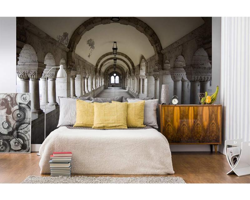 Vlies Fototapete - altertümlicher Korridor 375 x 250 cm