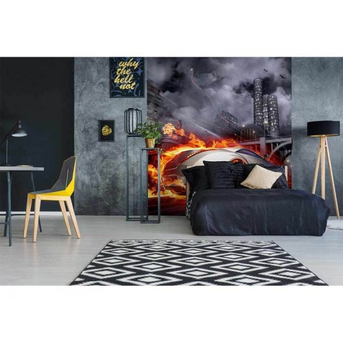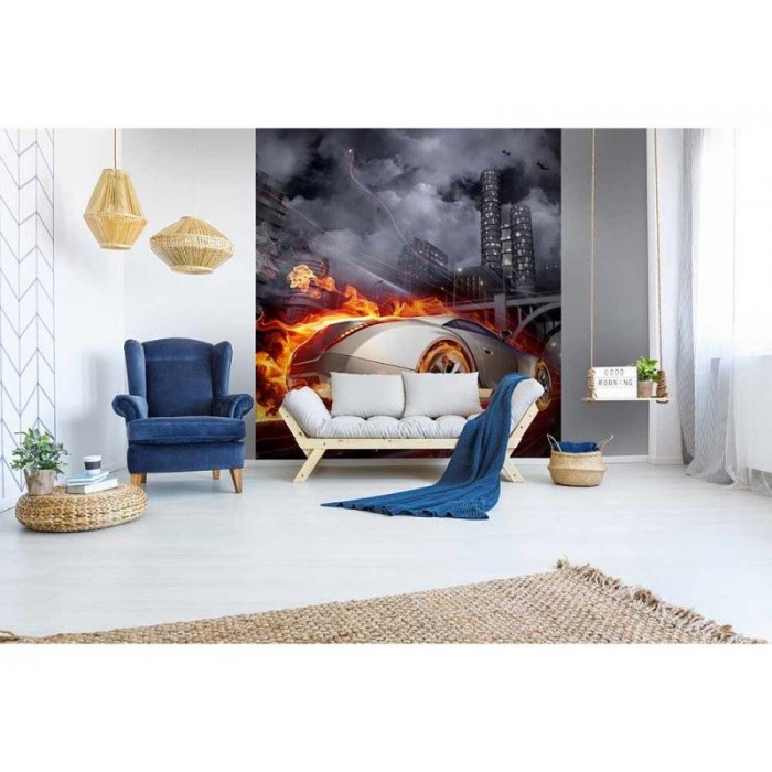 Vlies Fototapete - Auto in Flammen 225 x 250 cm