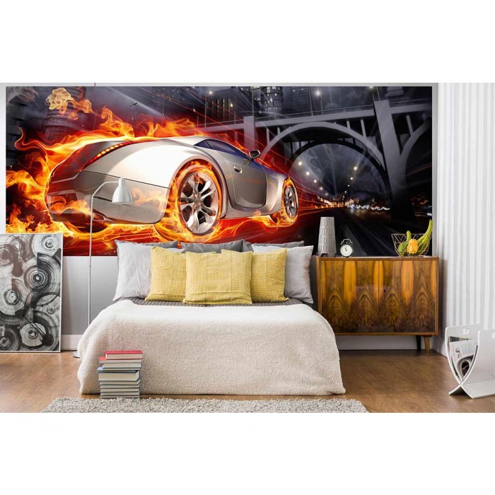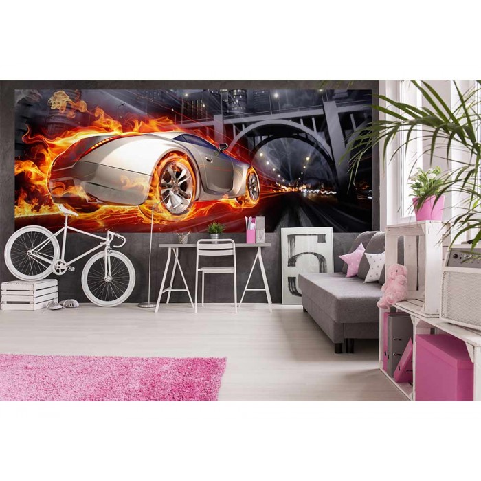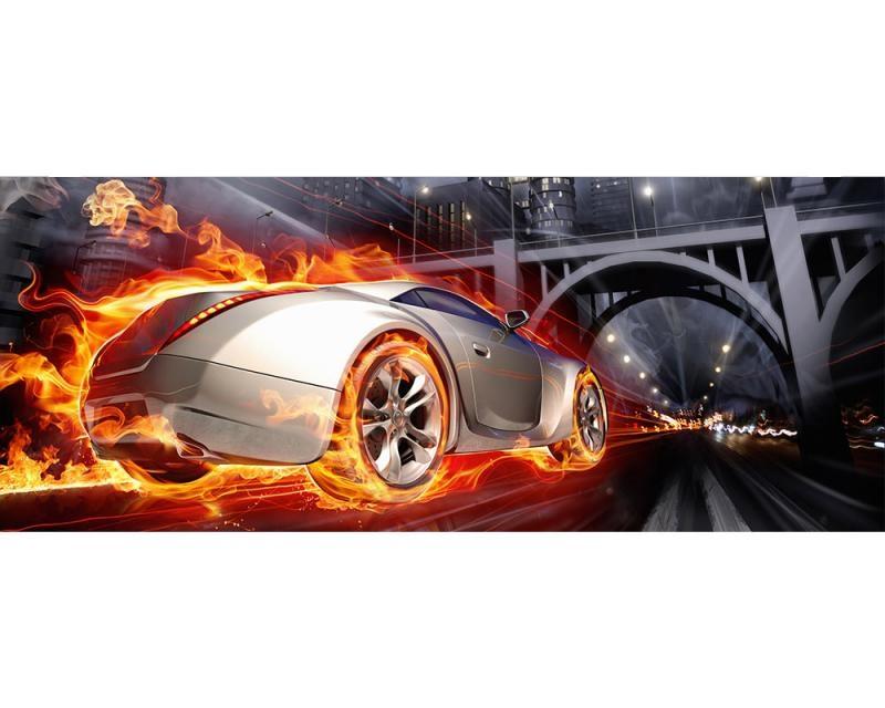 Vlies Fototapete - Auto in Flammen 375 x 150 cm