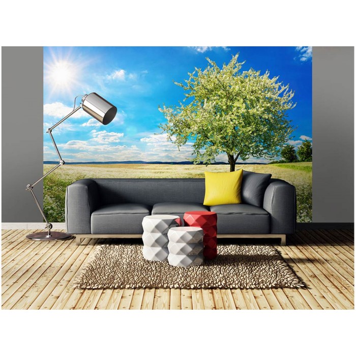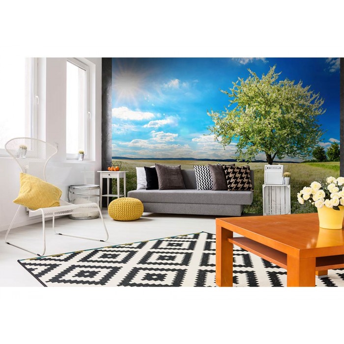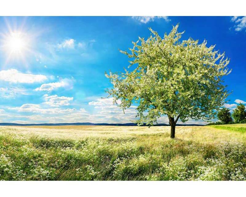 Vlies Fototapete - Baum auf Wiese 375 x 250 cm