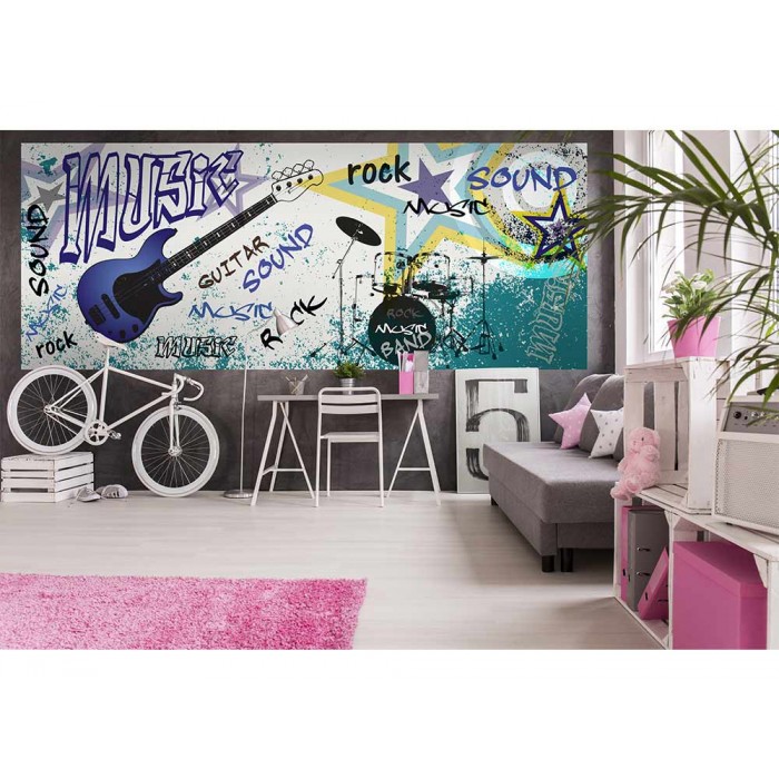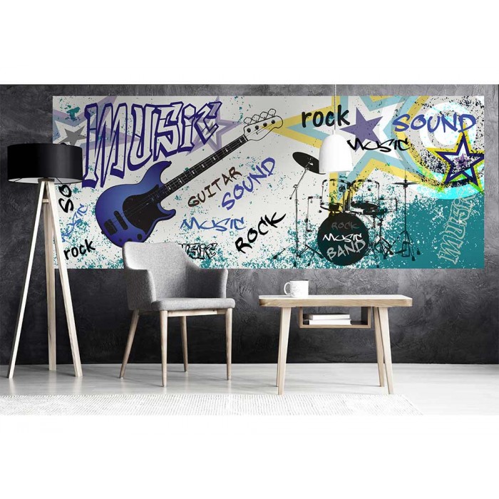 Vlies Fototapete - blau Gitarre 375 x 150 cm
