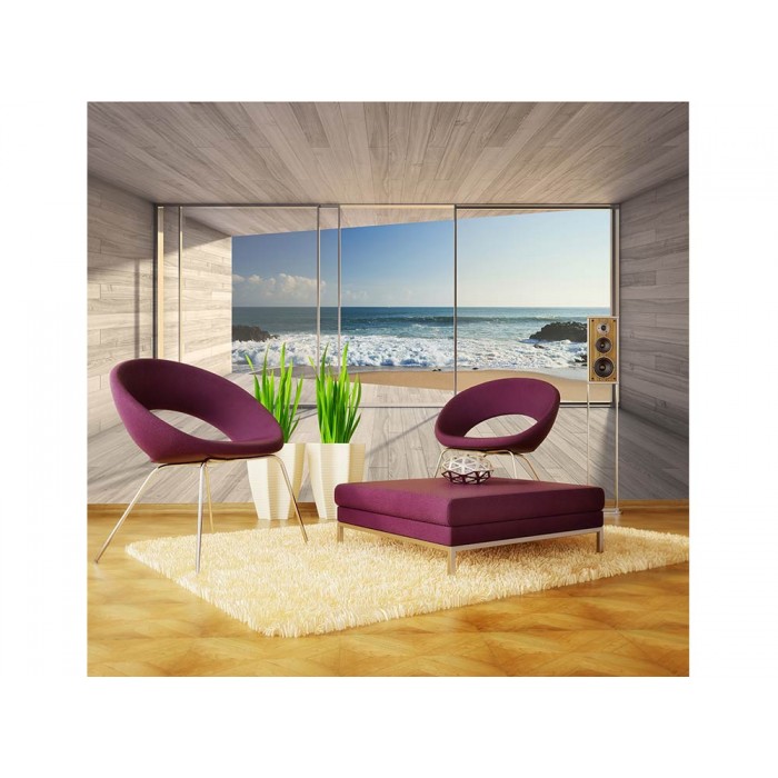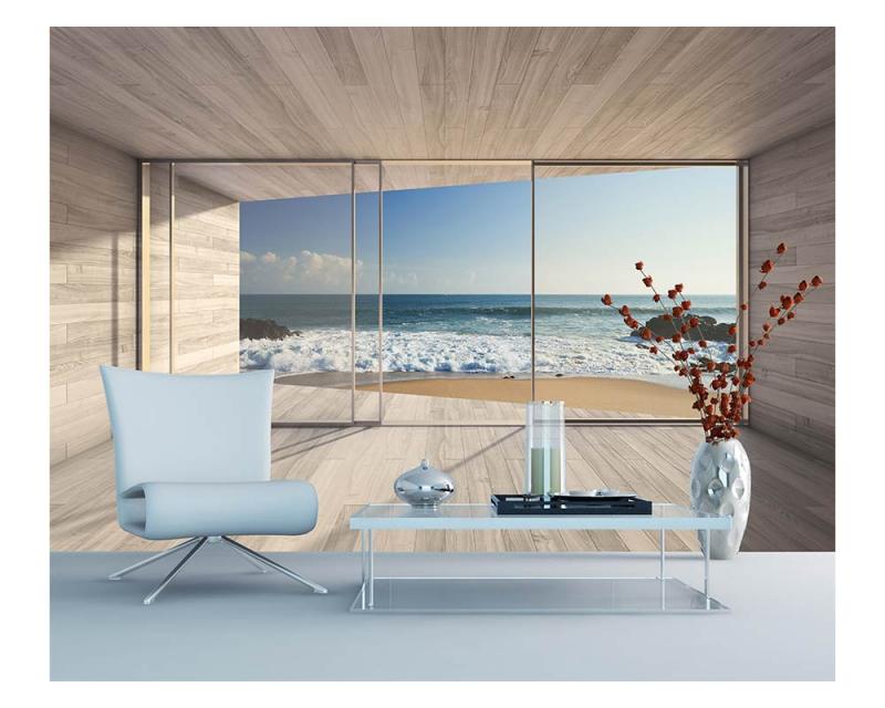 Vlies Fototapete - Fenster auf Strand 375 x 250 cm
