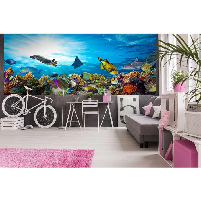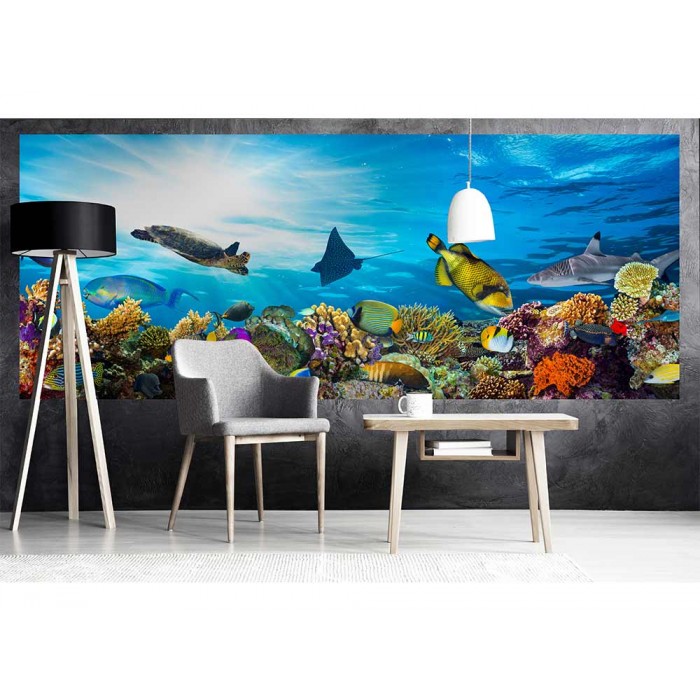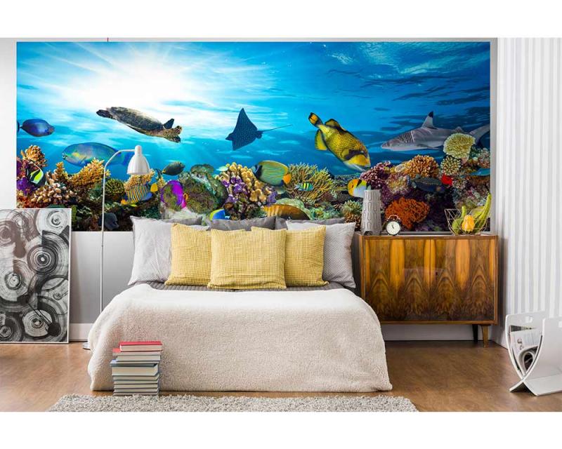 Vlies Fototapete - Fische im Ozean 375 x 150 cm