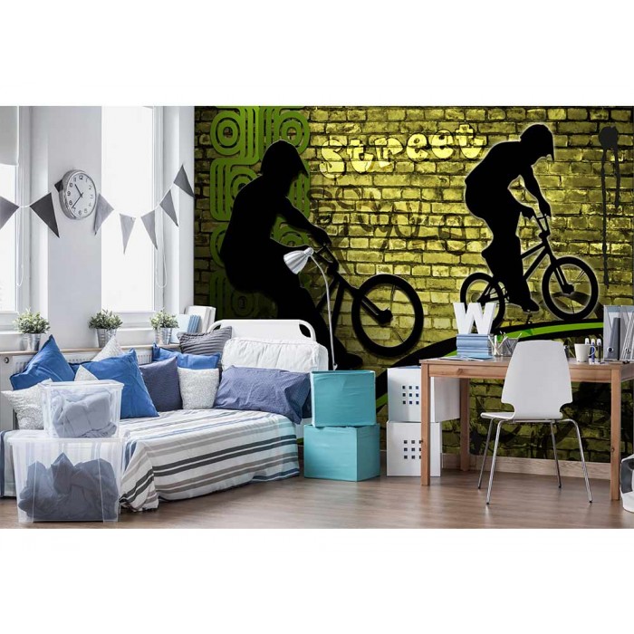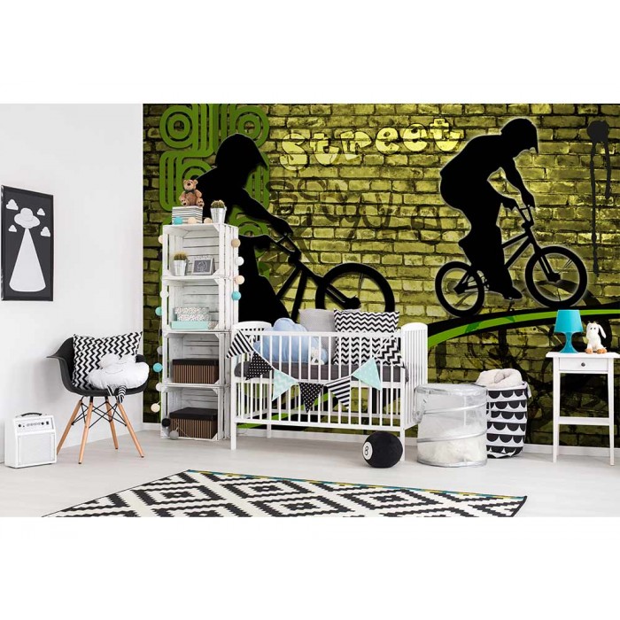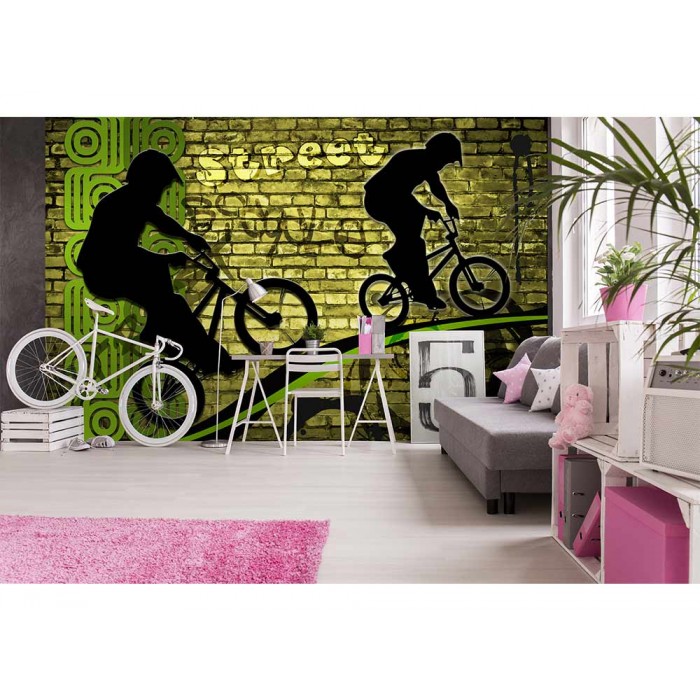 Vlies Fototapete - Grünes Fahrrad 375 x 250 cm