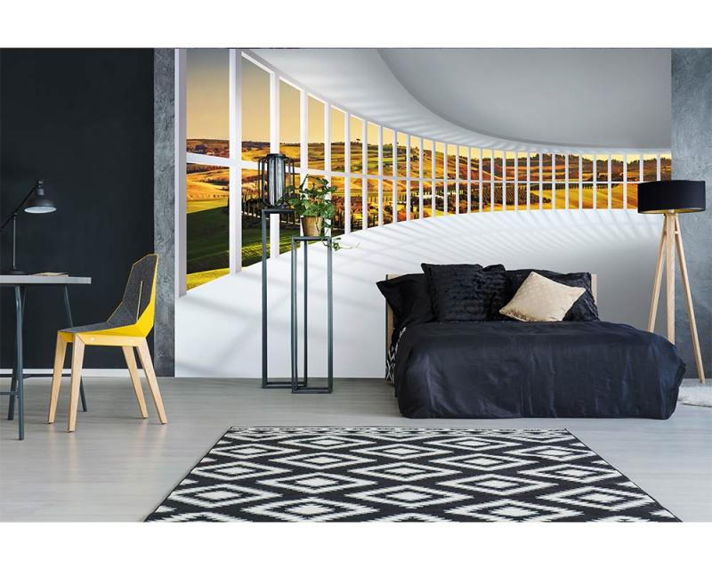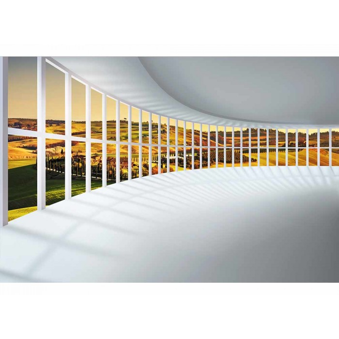 Vlies Fototapete - Halle mit Aussicht 375 x 250 cm