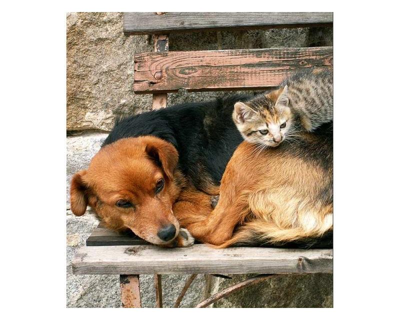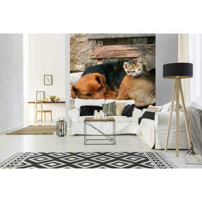 Vlies Fototapete - Katze und Hund 225 x 250 cm