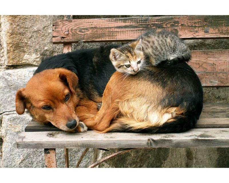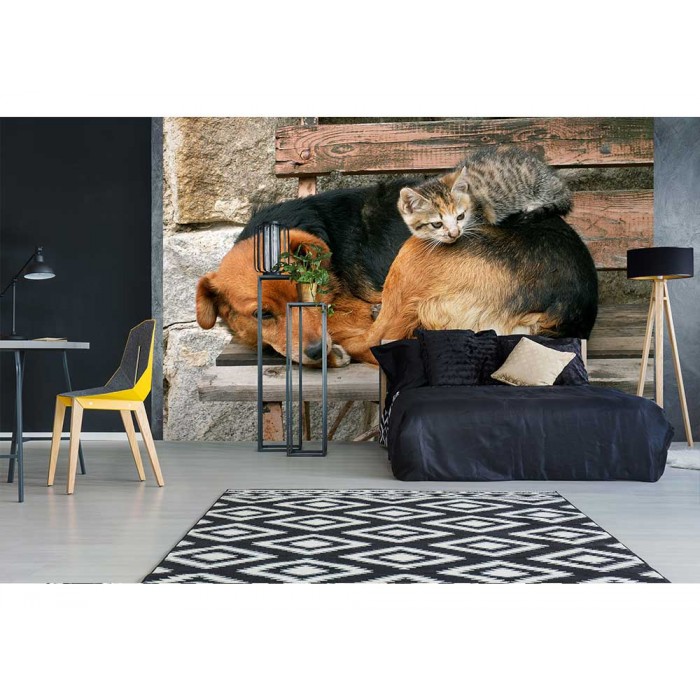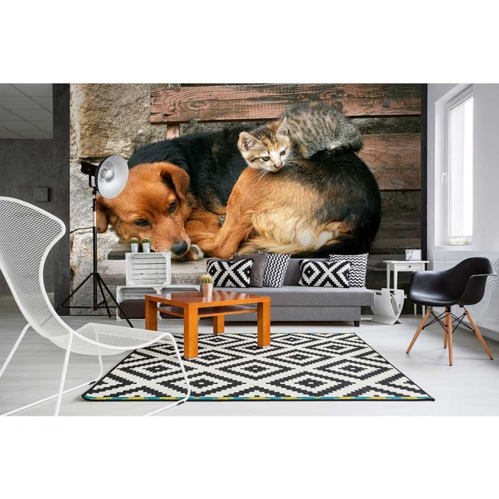 Vlies Fototapete - Katze und Hund 375 x 250 cm