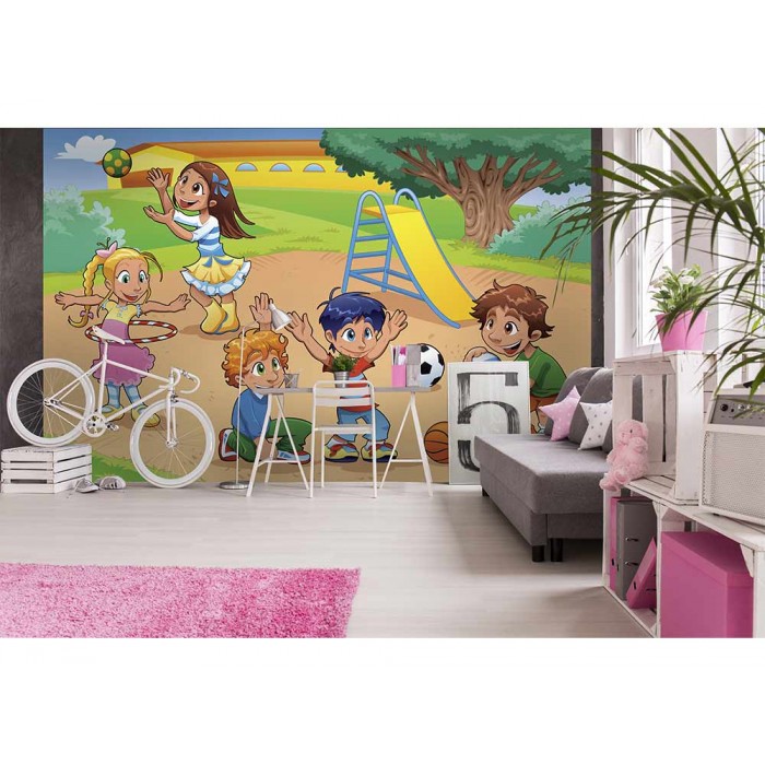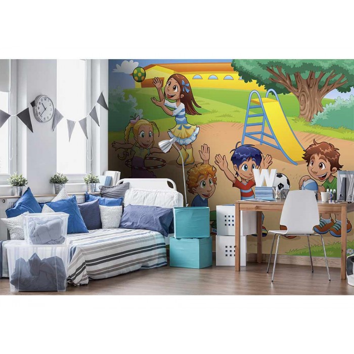 Vlies Fototapete - Kinder auf Spielplatz 375 x 250 cm