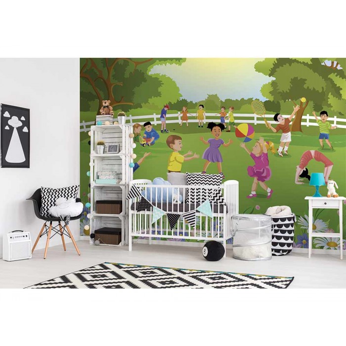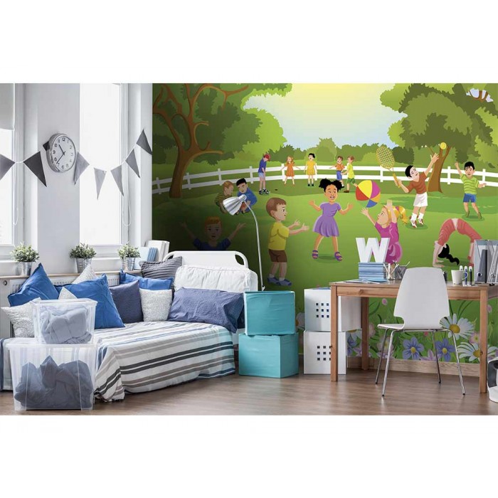 Vlies Fototapete - Kinder im Garten 375 x 250 cm
