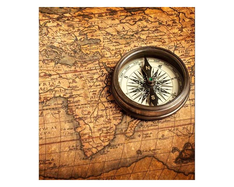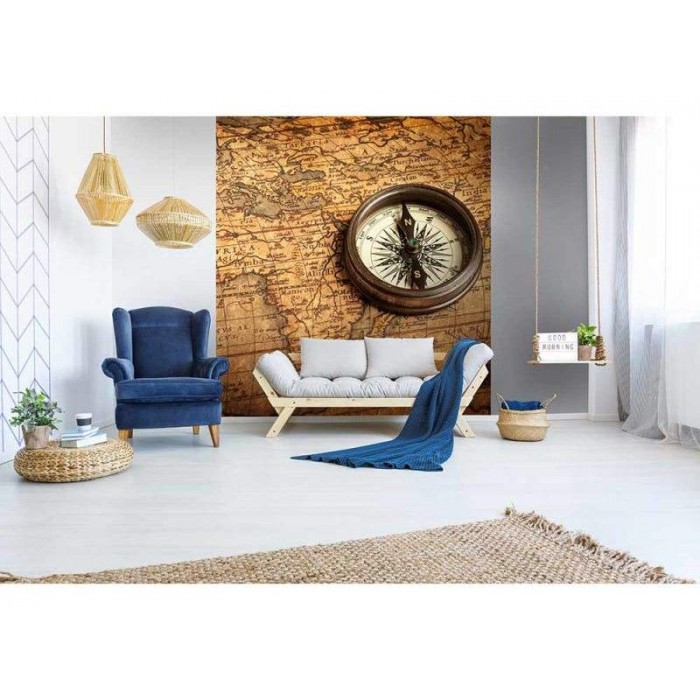 Vlies Fototapete - Kompass und Karte 225 x 250 cm