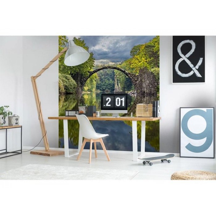 Vlies Fototapete - Landschaft mit Bogenbrücke 225 x 250 cm
