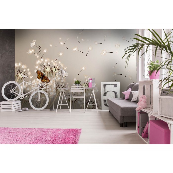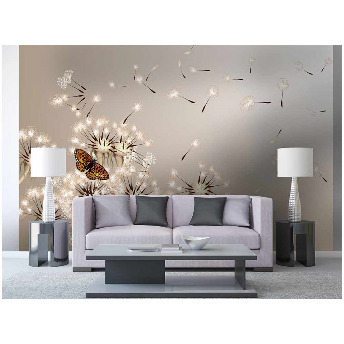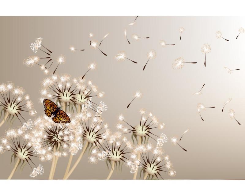 Vlies Fototapete - Löwenzahn und Schmetterling 375 x 250 cm