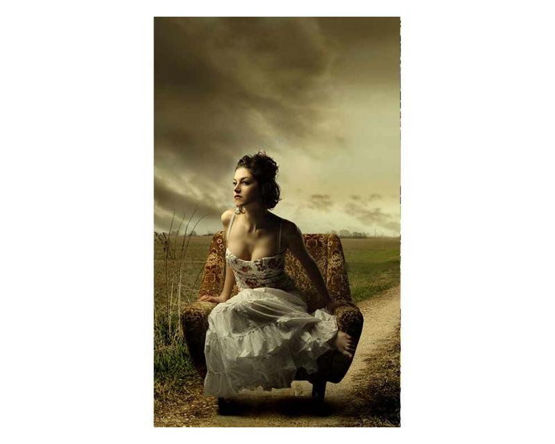 Vlies Fototapete - Mädchen auf Lehnsessel 150 x 250 cm