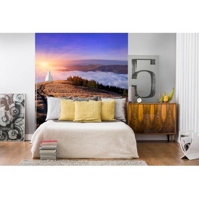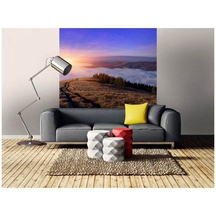 Vlies Fototapete - Morgendämmerung in den Bergen 225 x 250 cm