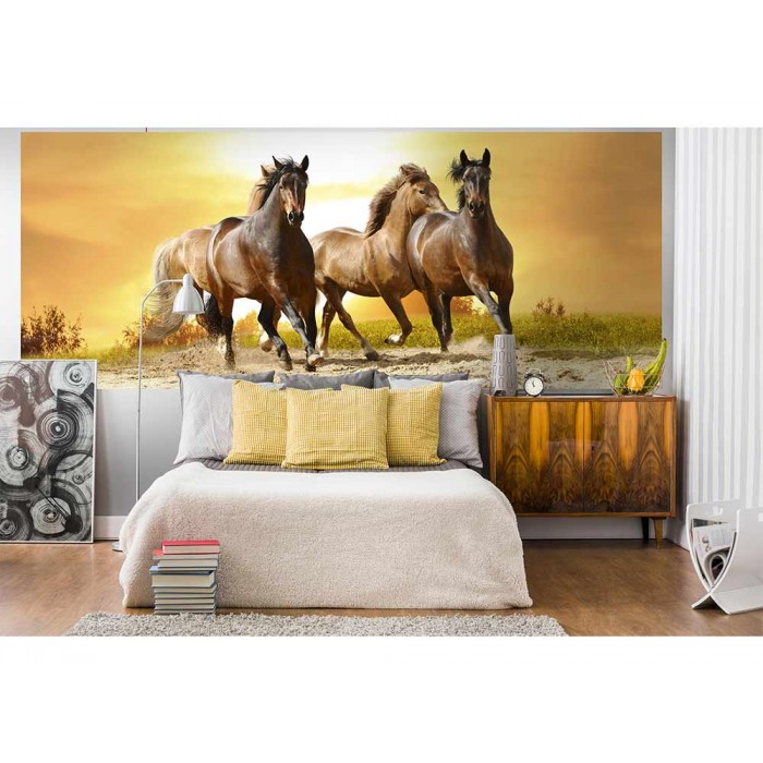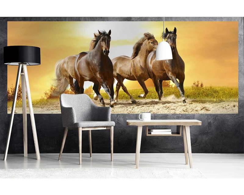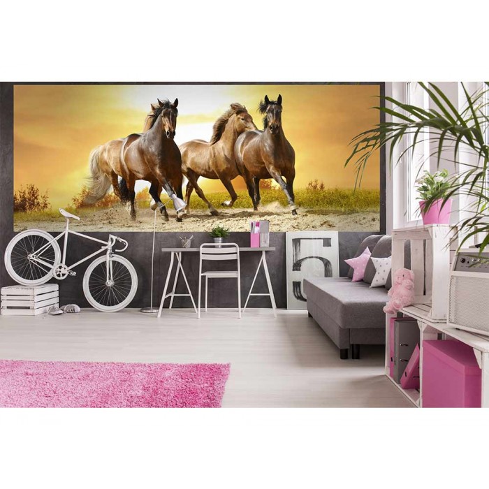 Vlies Fototapete - Pferde im Sonnenuntergang 375 x 150 cm